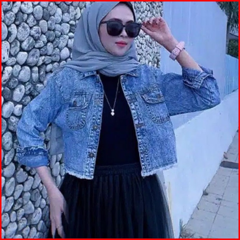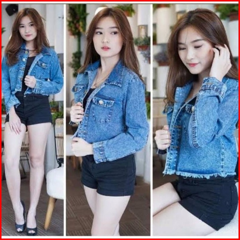 Jaket Crop Denim Jeans Wanita Rawis Jaket Jins Lepis Cewe Cewek