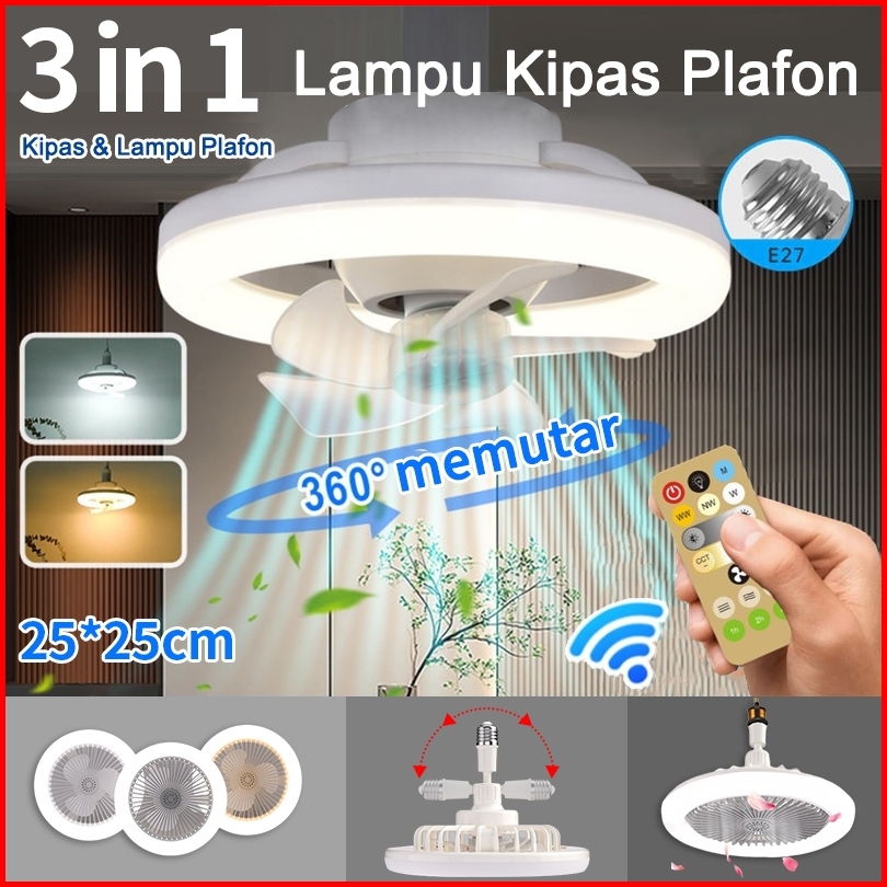Lampu Kipas Angin Remote 3in1 36w E27 Plafon Fan Ceiling