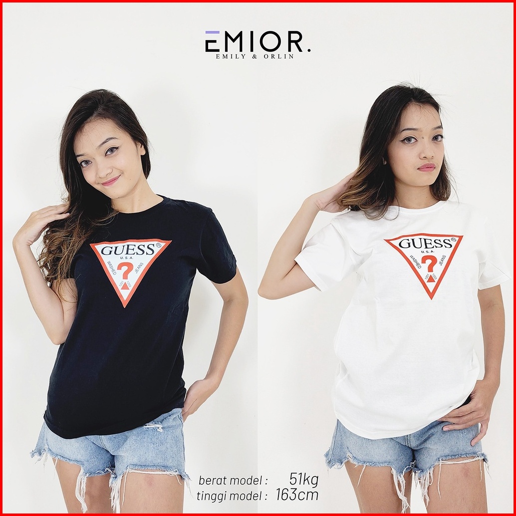 Emior Kaos Wanita Baju Atasan Perempuan Cewek Cewe Branded Import Impor Premium Branded Tee - Guees Basic Gue