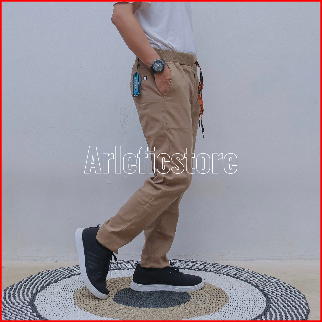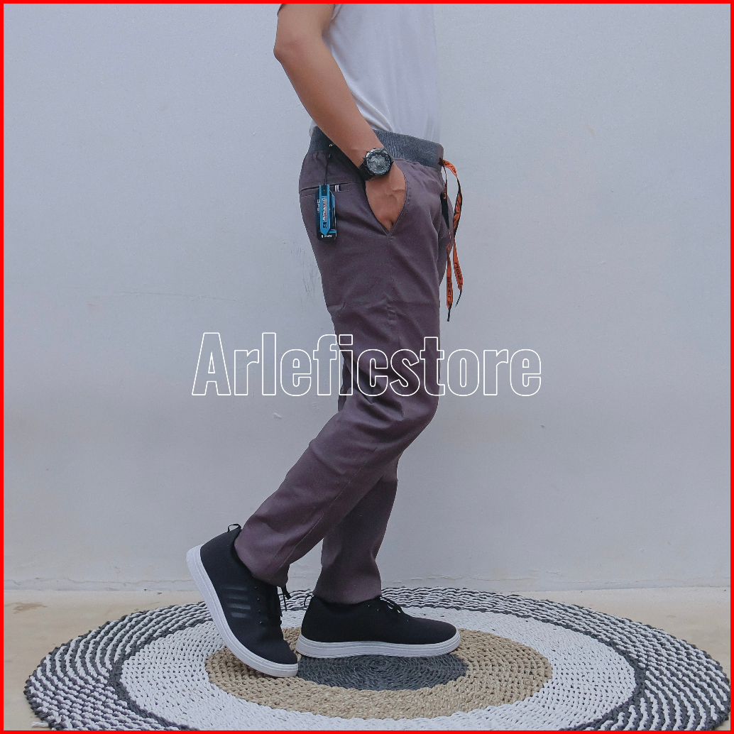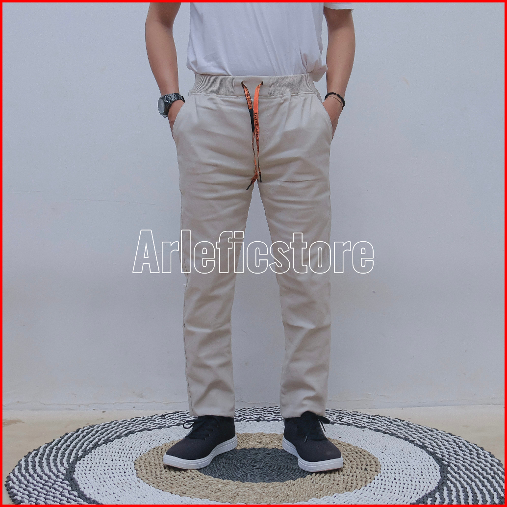 Celana Chinos Chino Panjang Karet Pinggang Rip Celana Chino Pria Panjang Rip