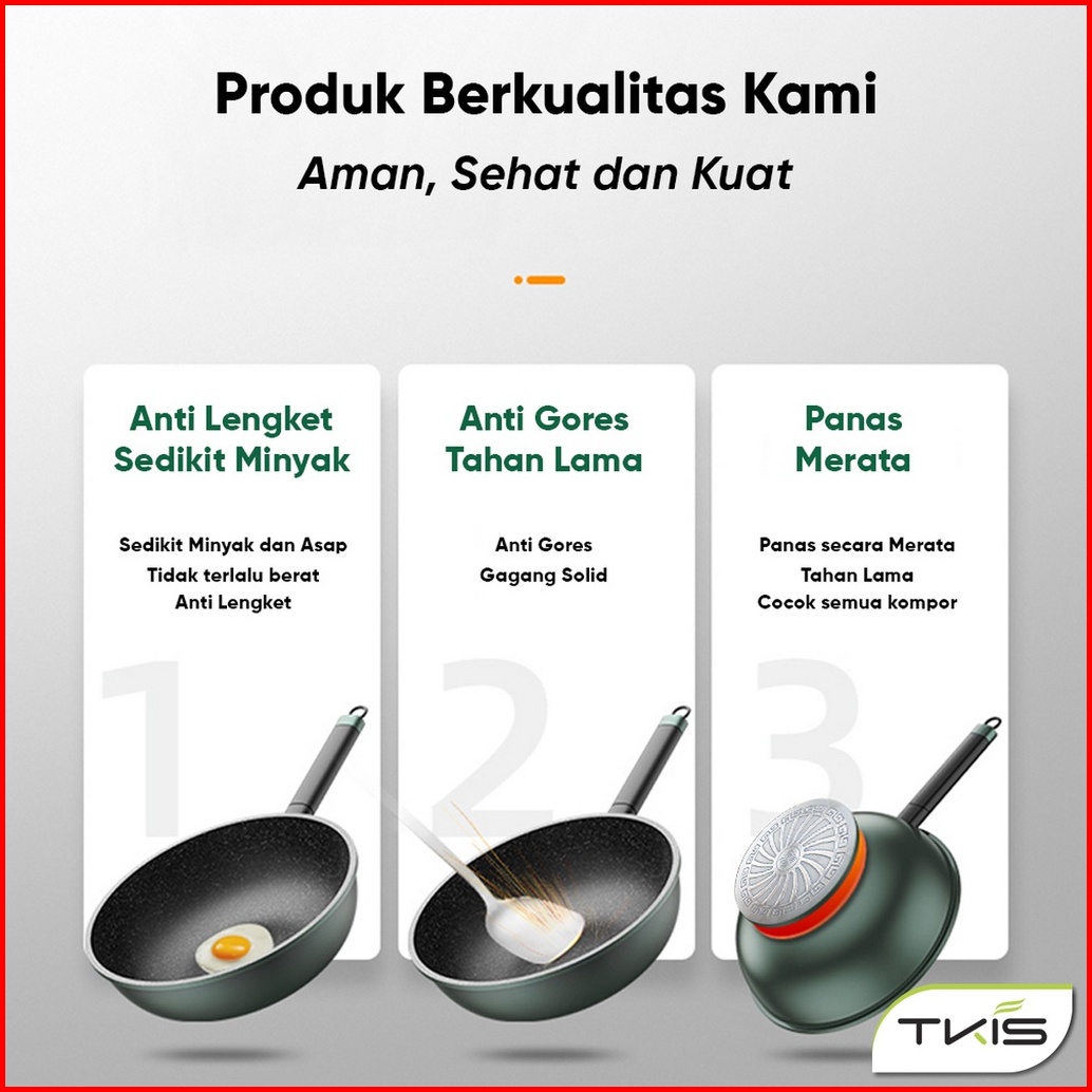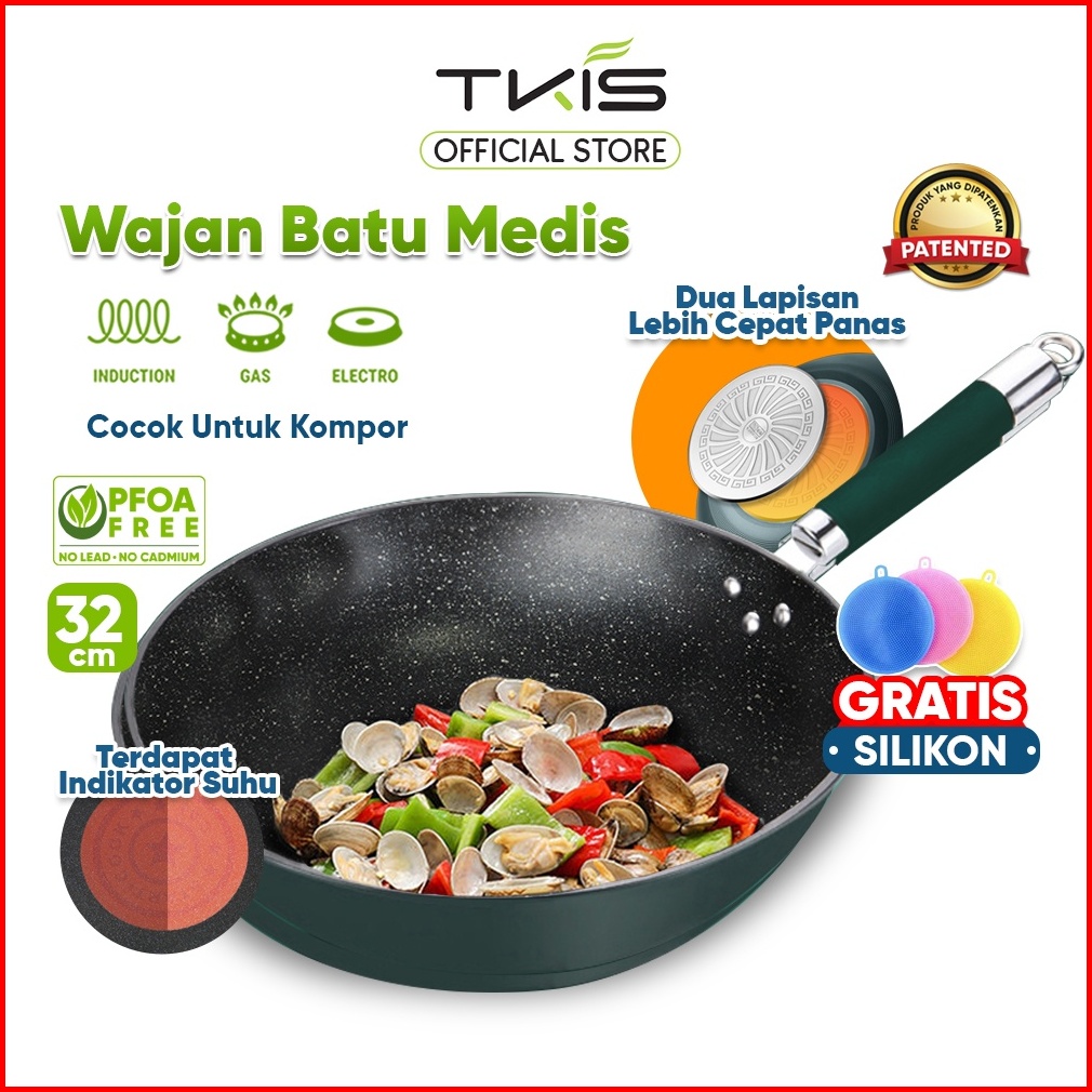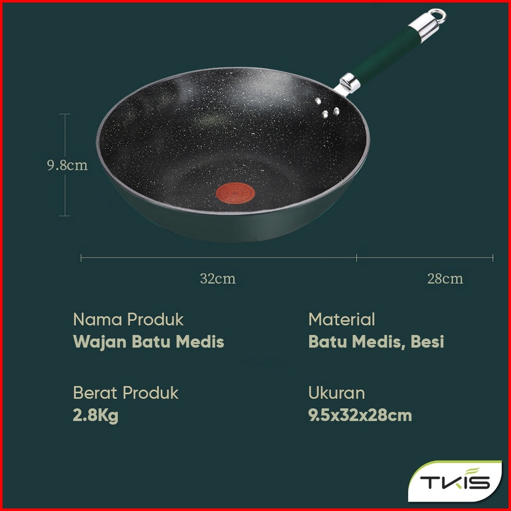 Tkis Wajan Bottom Induksi 32cm Panci Wokpan Anti Lengket Batu Medis Tk-835