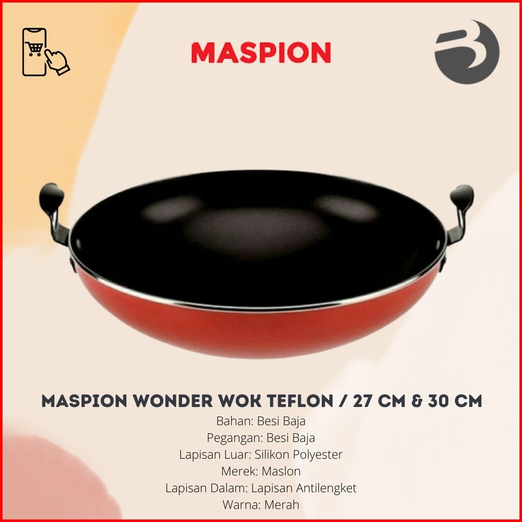 Maspion Blg Wonder Wok Panci Wajan Penggorengan Teflon Tumis Anti Lengket 27 Cm 30 Cm - Merah