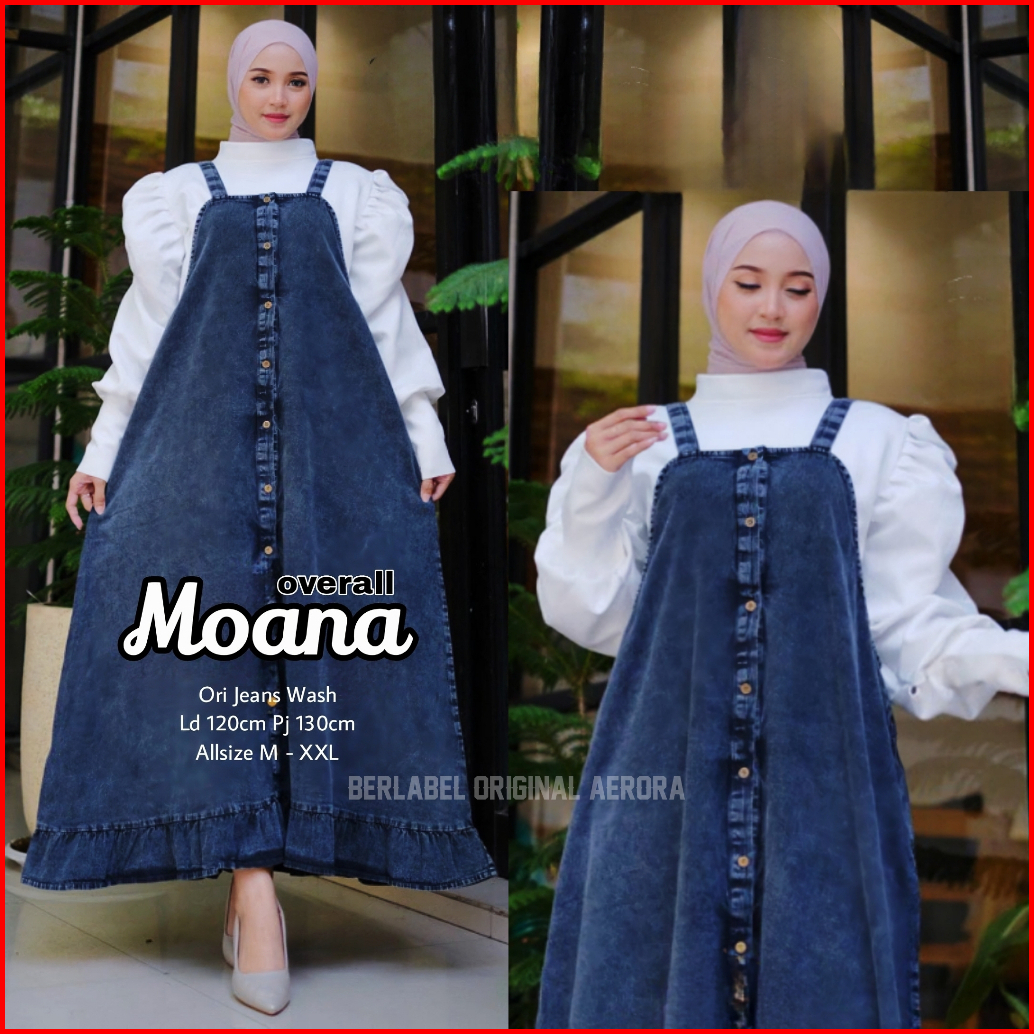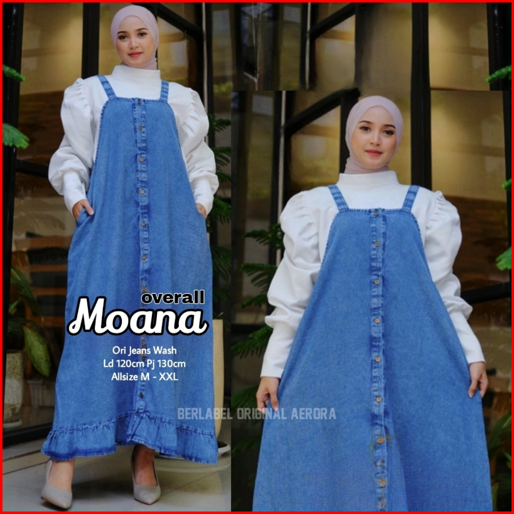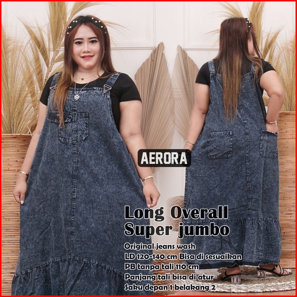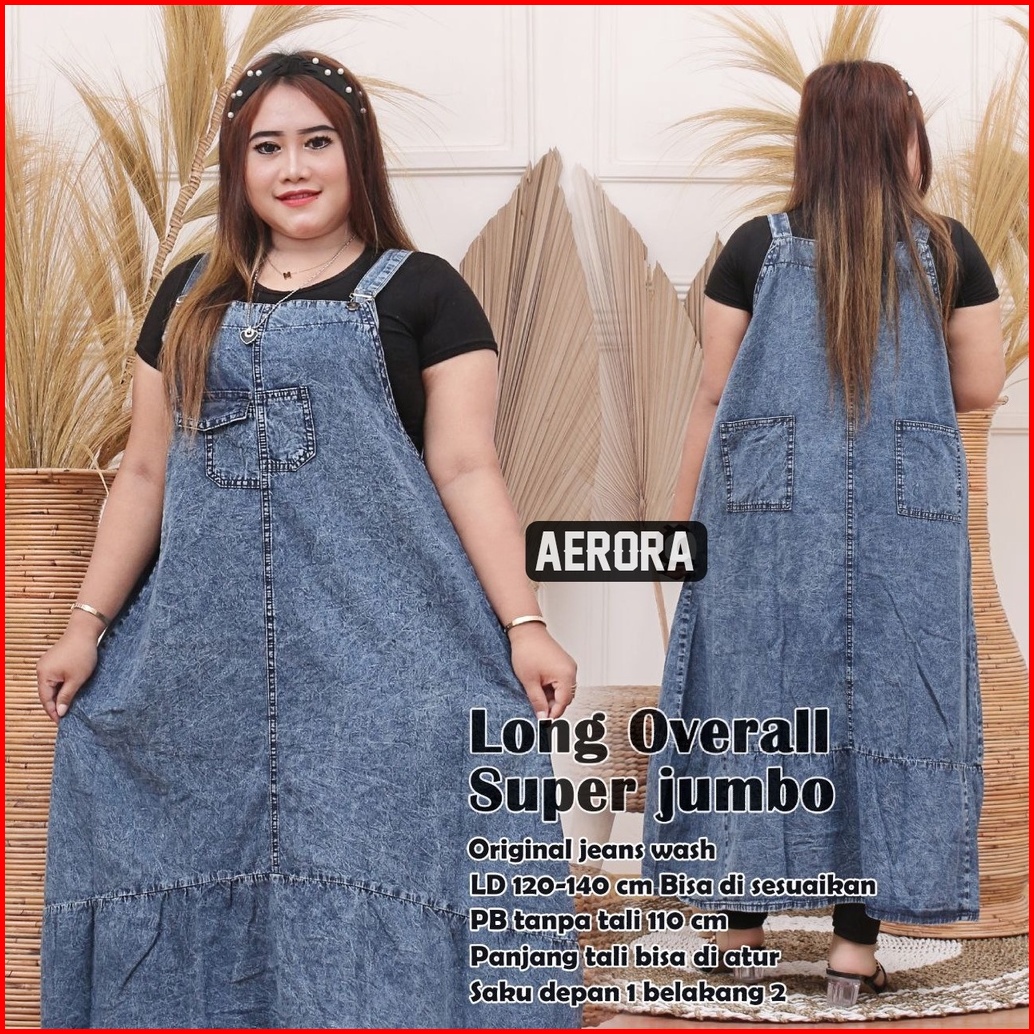 Aerora Baju Kodok Overall Dress Jeans Wanita Jumbo Motif Polos Fashion Terbaru 2025 Long Rampel