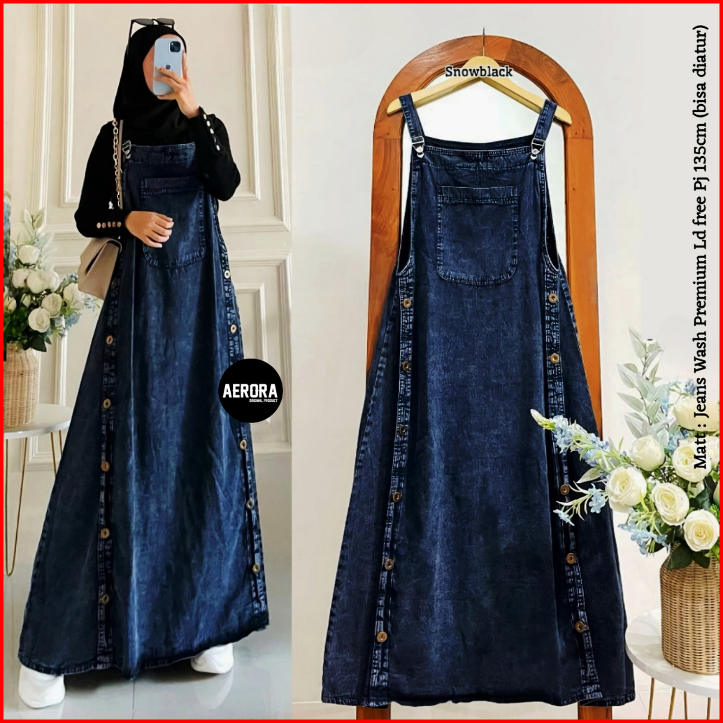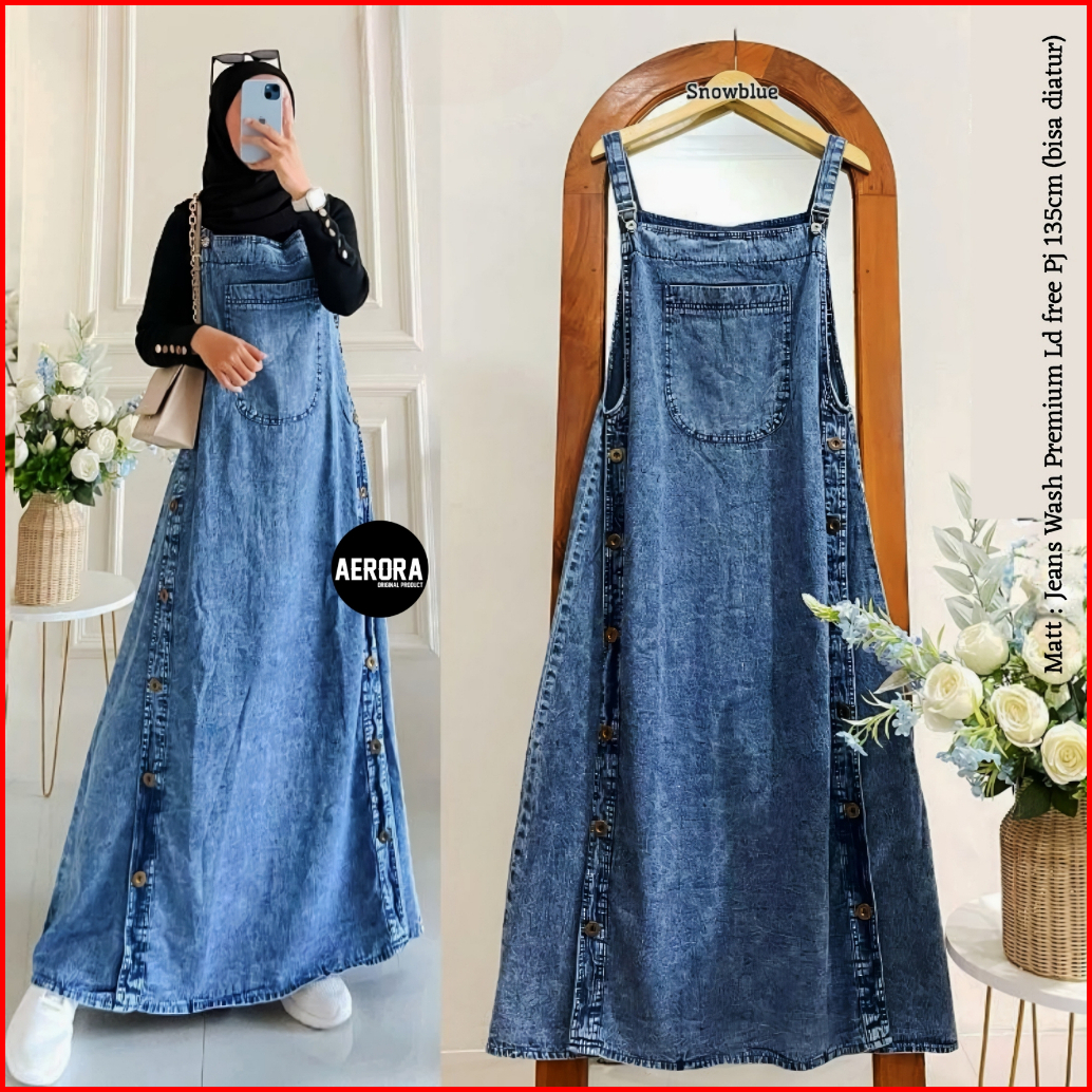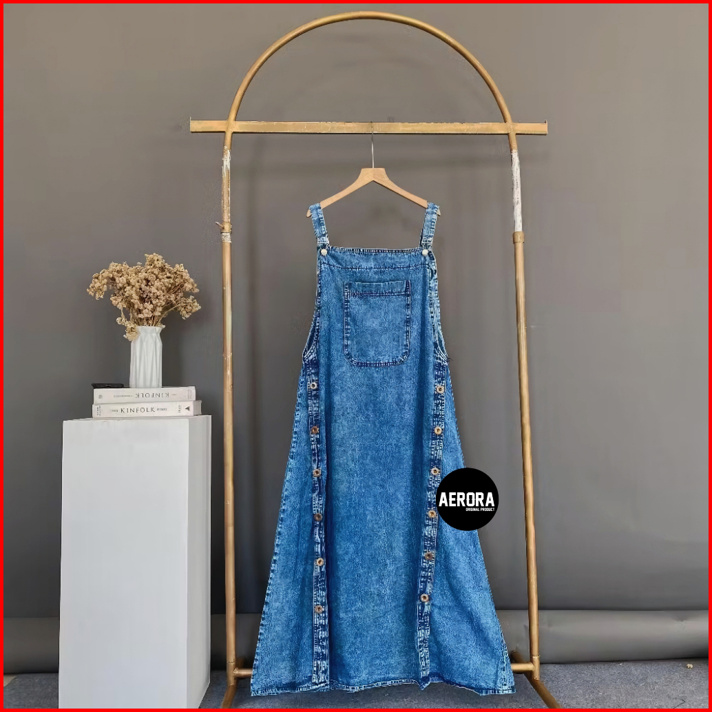 Aerora Baju Kodok Jesina Overall Dress Rok Jeans Wanita Jumbo Bigsize Terbaru Korean Style 2025