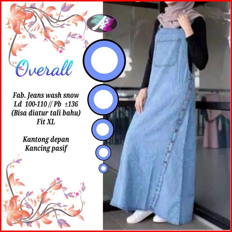 Overall Jeans Size Fit L To Xl Ld 100-110 Busana Muslim Remaja Dan Ibu Modern