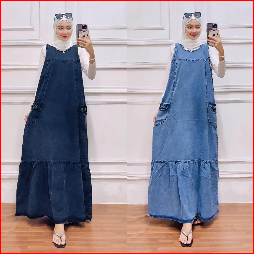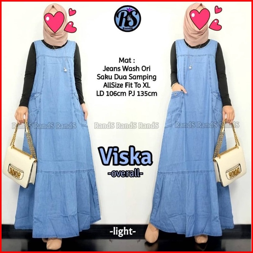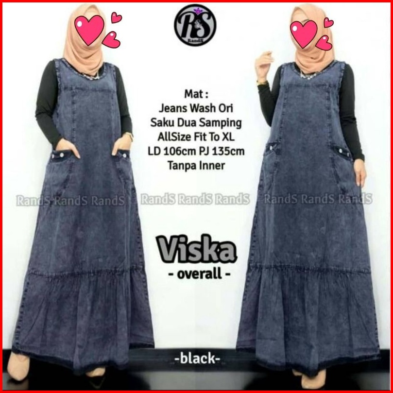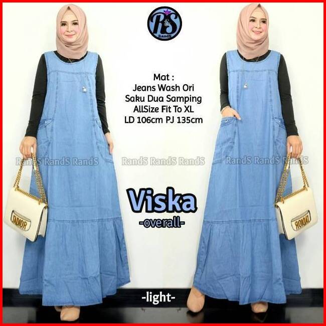 Viska Overal Jeans Wanita Muslim Kekinian Motif Polos Bahan Jeans Premium