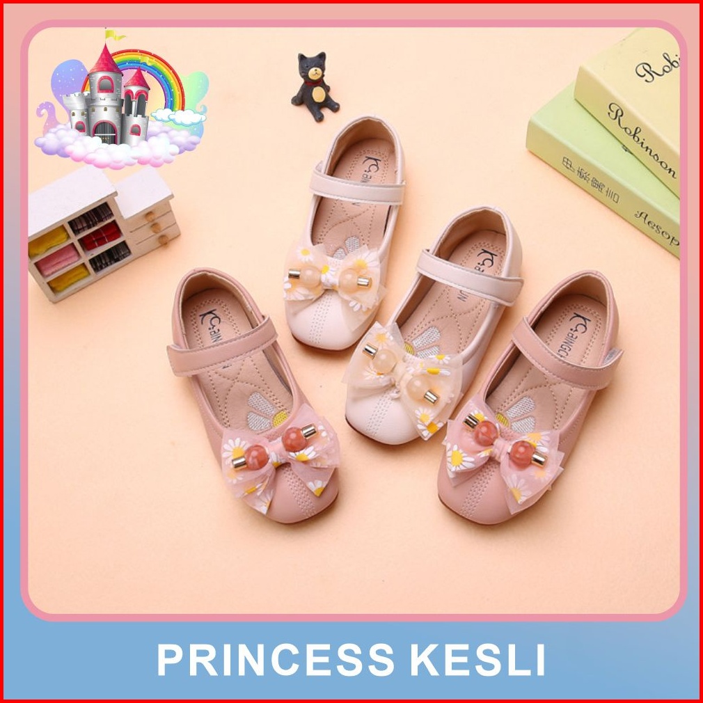 Princess Kesli Size26- 32 Sepatu Pesta Marble Daisy Anak Perempuan Slop Kulit Putri Model Korea