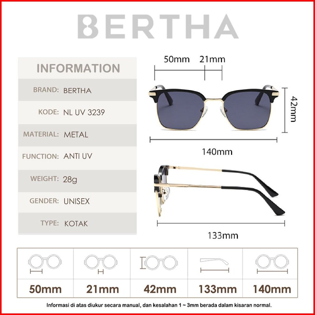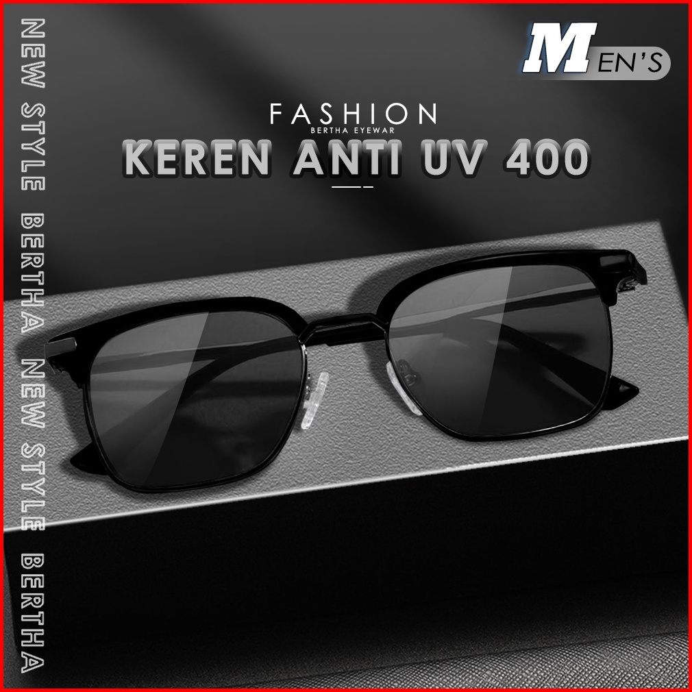 Bertha Kacamata Sunglasses Anti Uv 400 Silau Matahari Syle Simple Fashion Pria Wanita Bentuk Kotak Keren Bahan Metal Kua