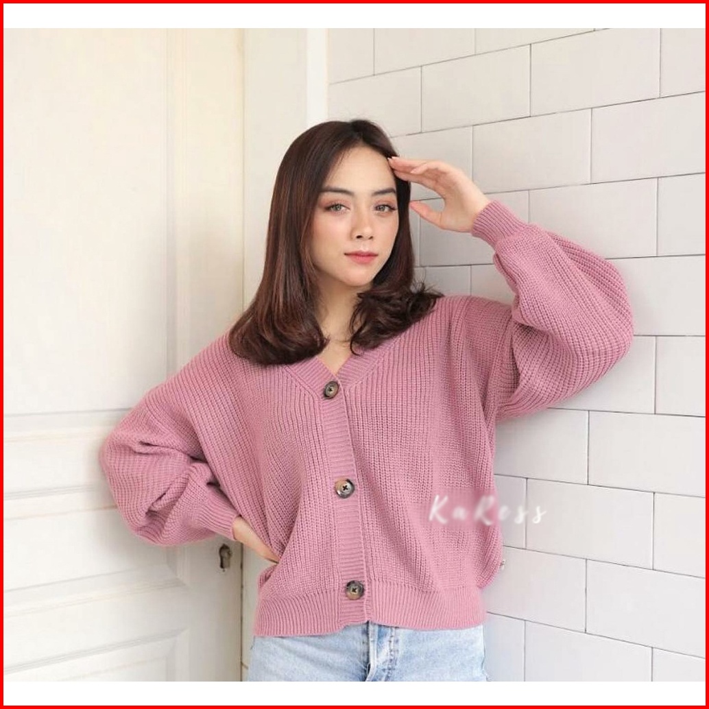 Cardigan Rajut Wanita Crop Korea - Kardigan Crop Polos Carra Cardi