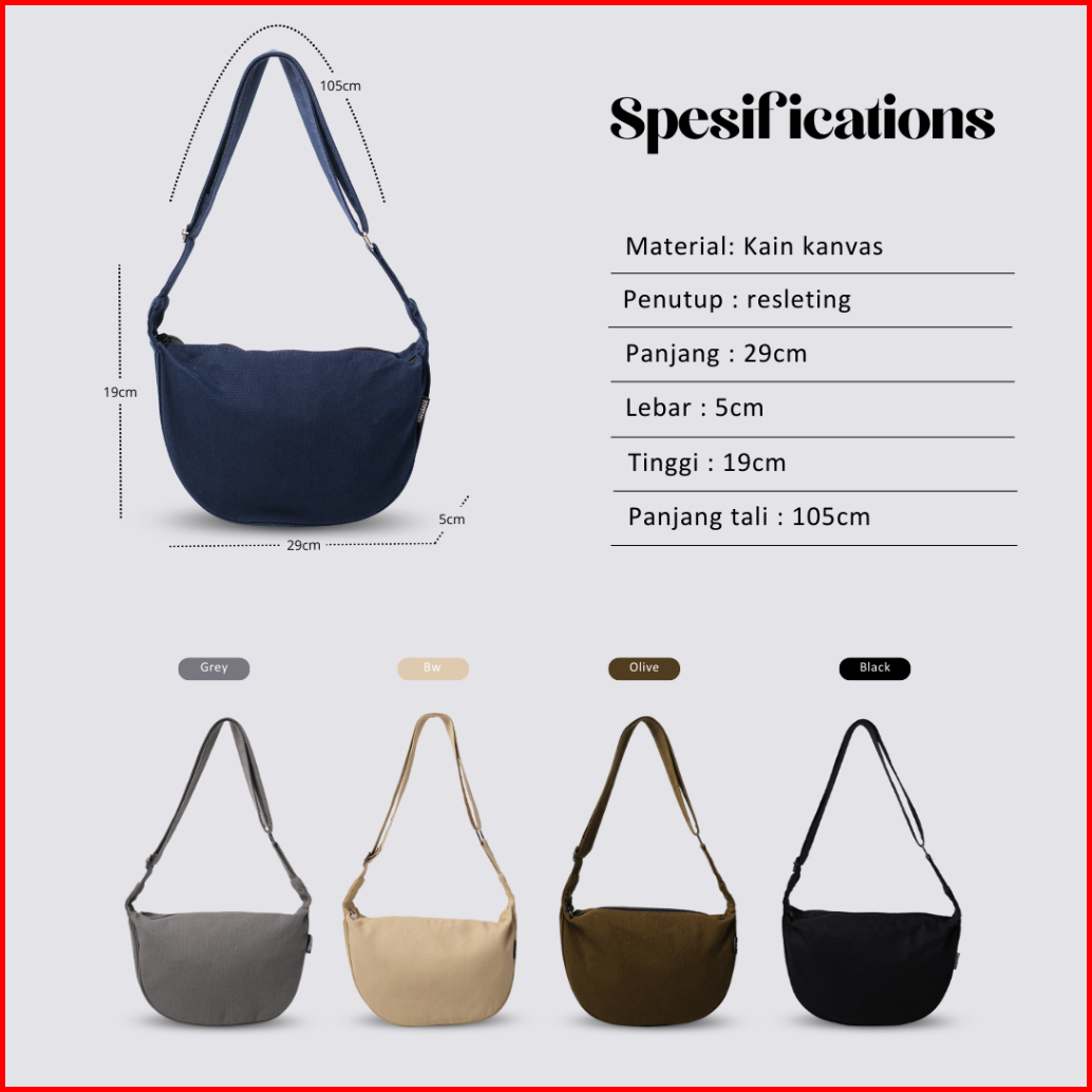 Vibesbags Slingbags Vinny Tas Selempang Wanita Dan Pria Unisex Kuliah Kanvas Resleting Shoulder Bag
