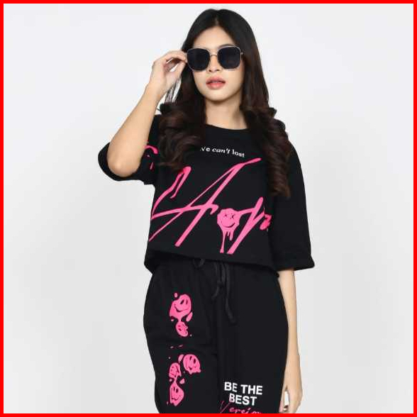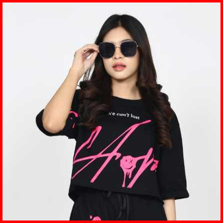 Kaos Wanita - Kaos Combed 24s - Meisua Croptop Oversize - Varian Croptop Hope Hitam Xl