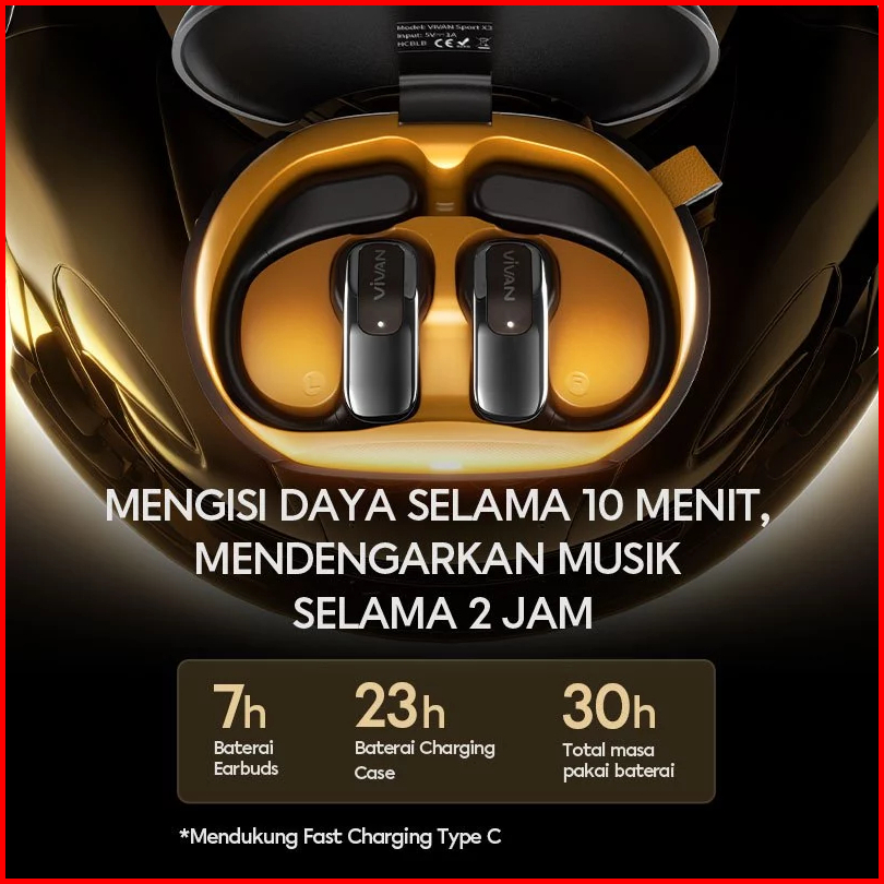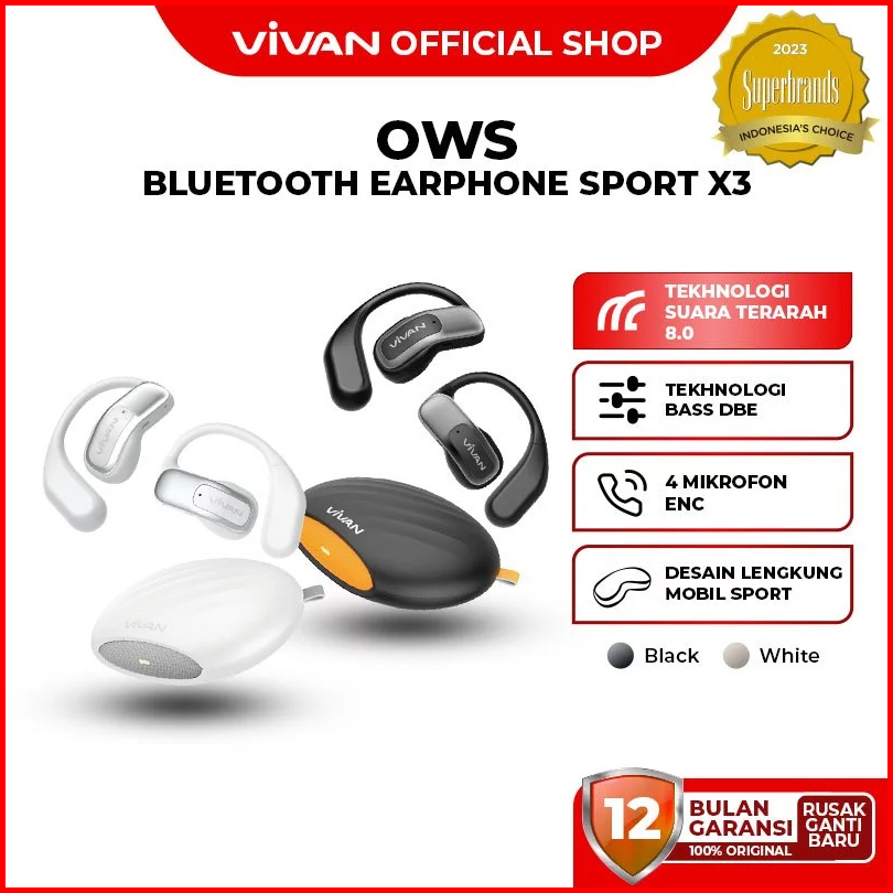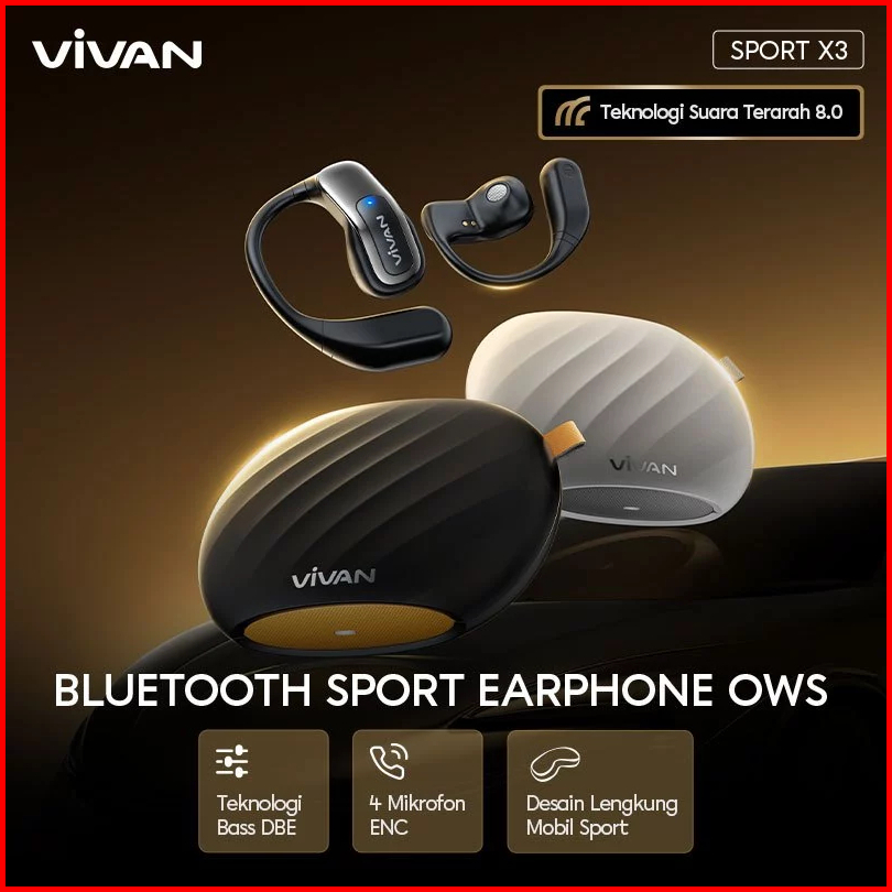 Vivan Tws Sport X3 Headset Wireless Bluetooth 5.4 Ipx5 Ows Open Ear Dual Enc Garansi Original Resmi