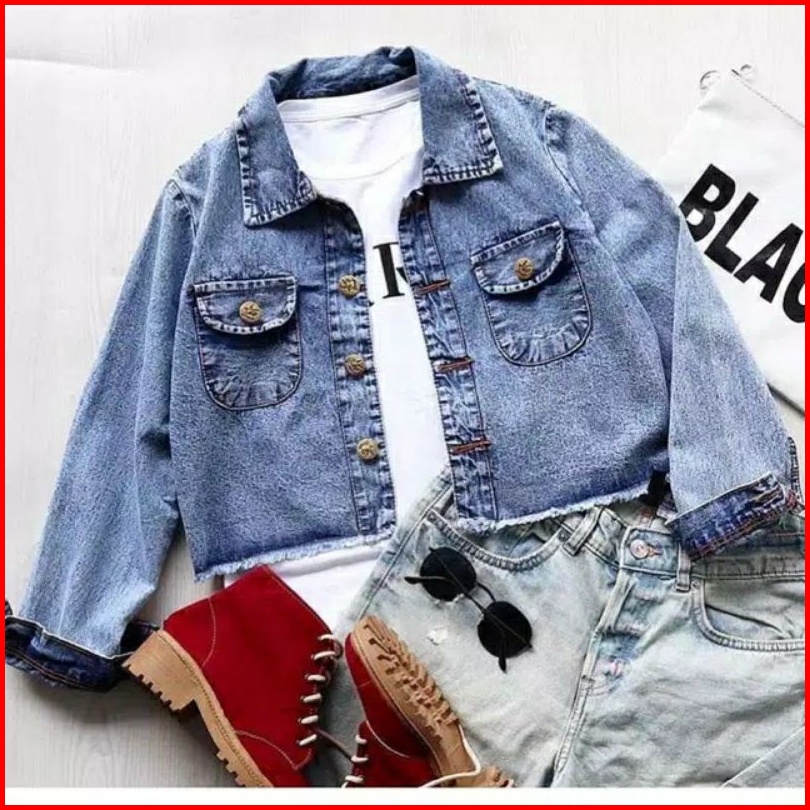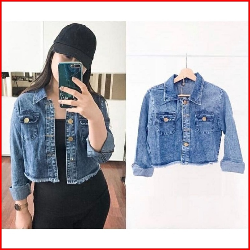 Jaket Jeans Crop Wanita Cewek Cewe Rawis Jaket Jins Denim Jaket Murah Terbaru Terlaris Crop Jumbo Jaket Oversize
