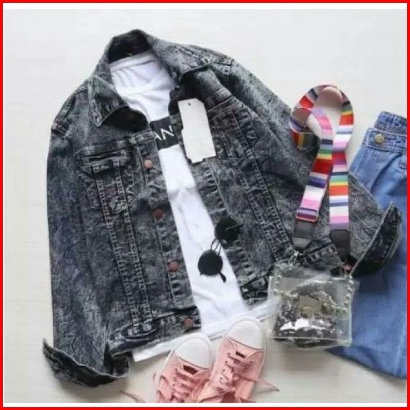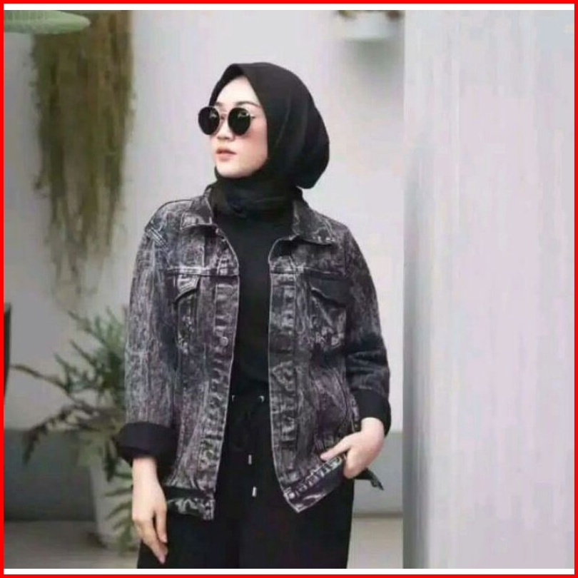 Jaket Jeans Denim Wanita Bigsize Cewek Snow Black Sandwash Hitam Jaket Denim Jeans Wanita Kekinian Jaket Wanita Snow
