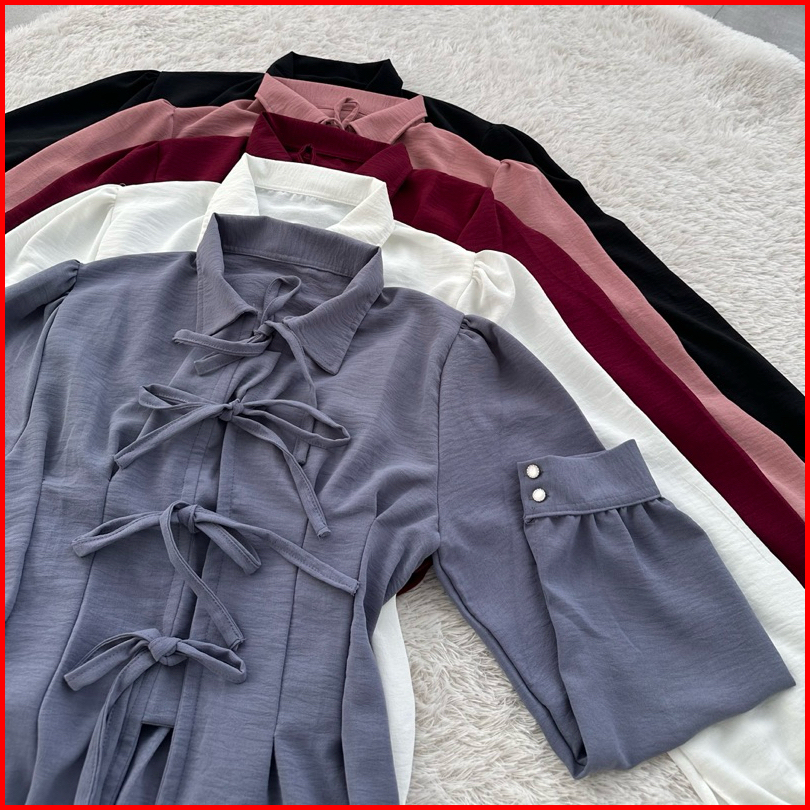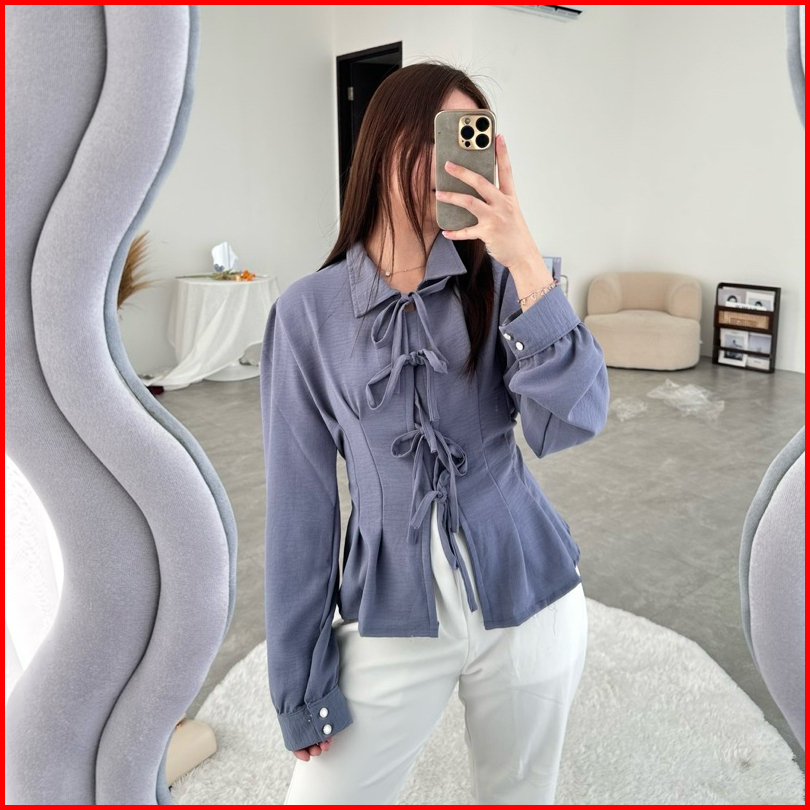 Yerin Top Blouse Wanita Korea Pita Coquette Blouse Atasan Coquette Murah Blouse Hijab Kantor Kasual Lengan Panjang Elega