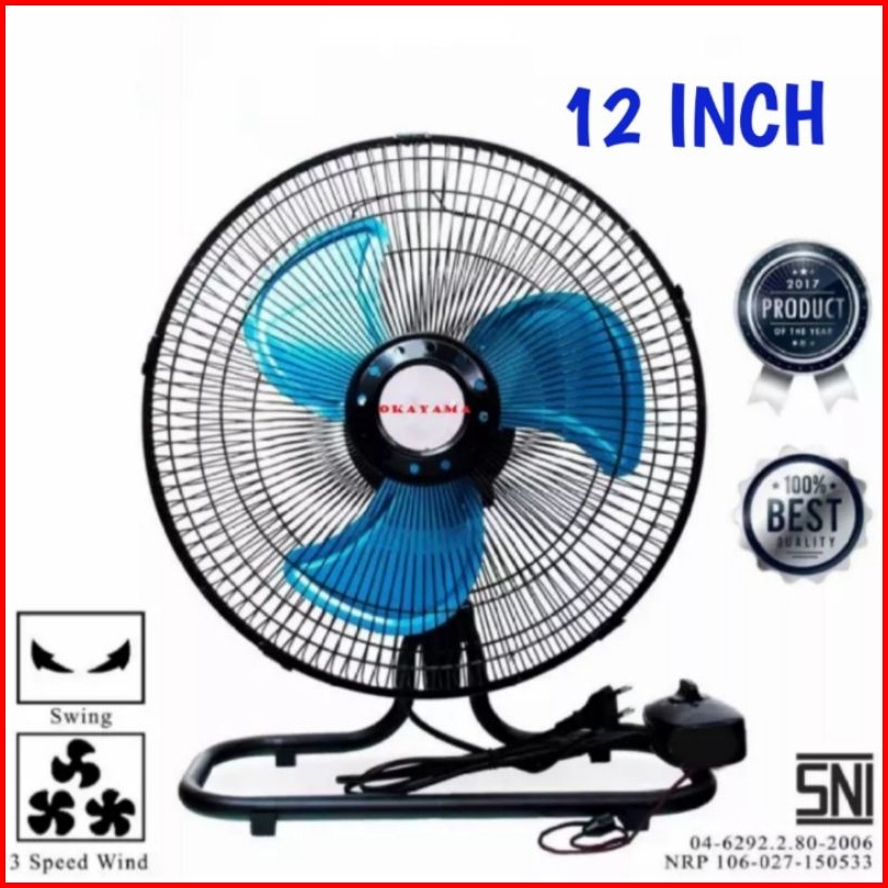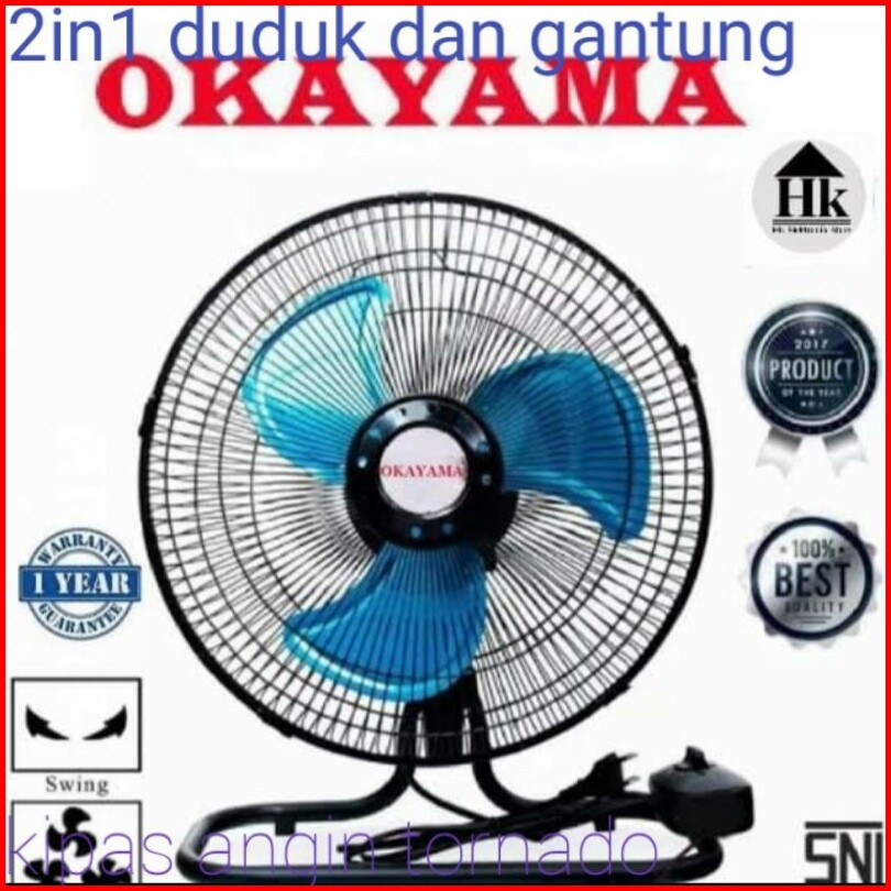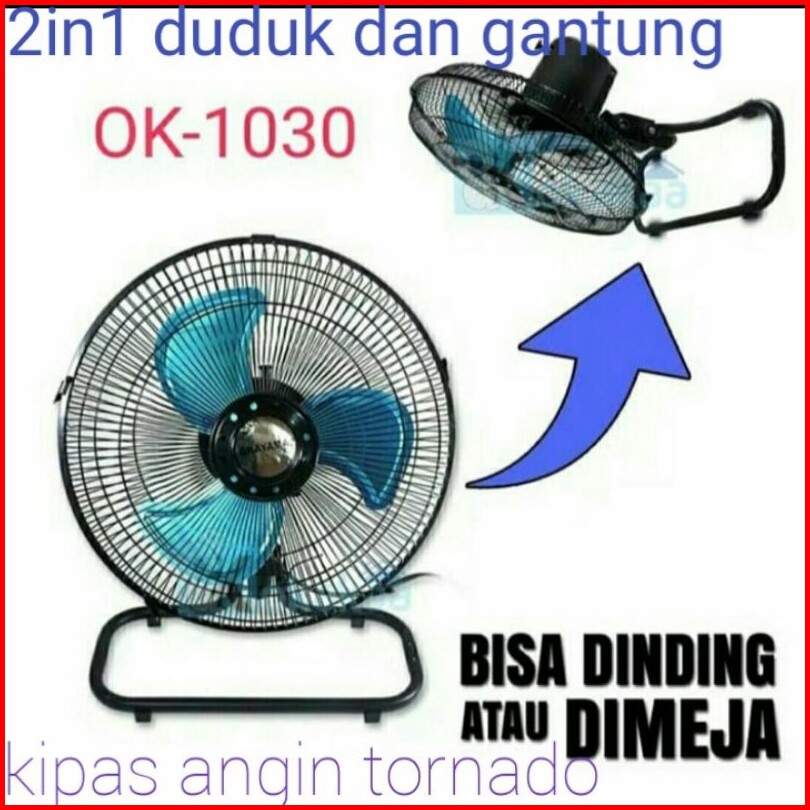 Kipas Angin Besi Tornado Okayama 10inch 12inch 2 Fungsi Dinding Dan Meja