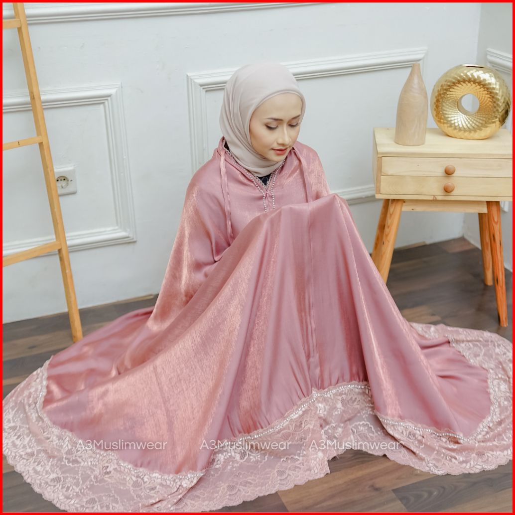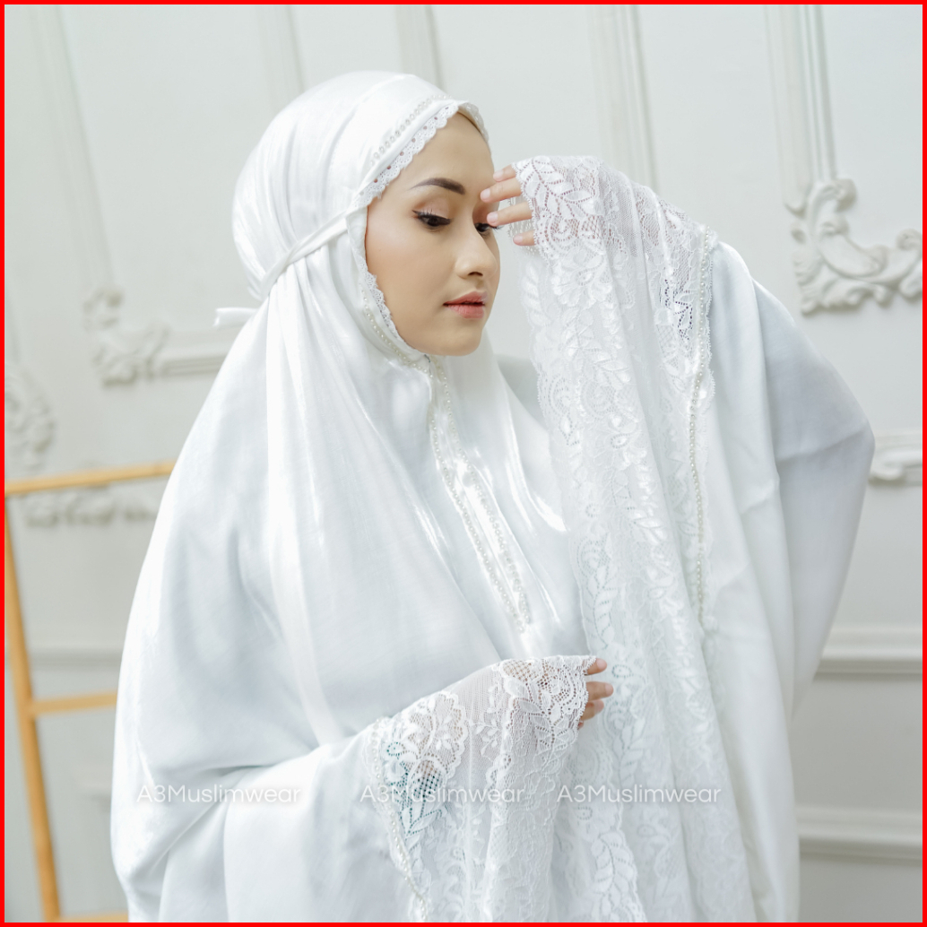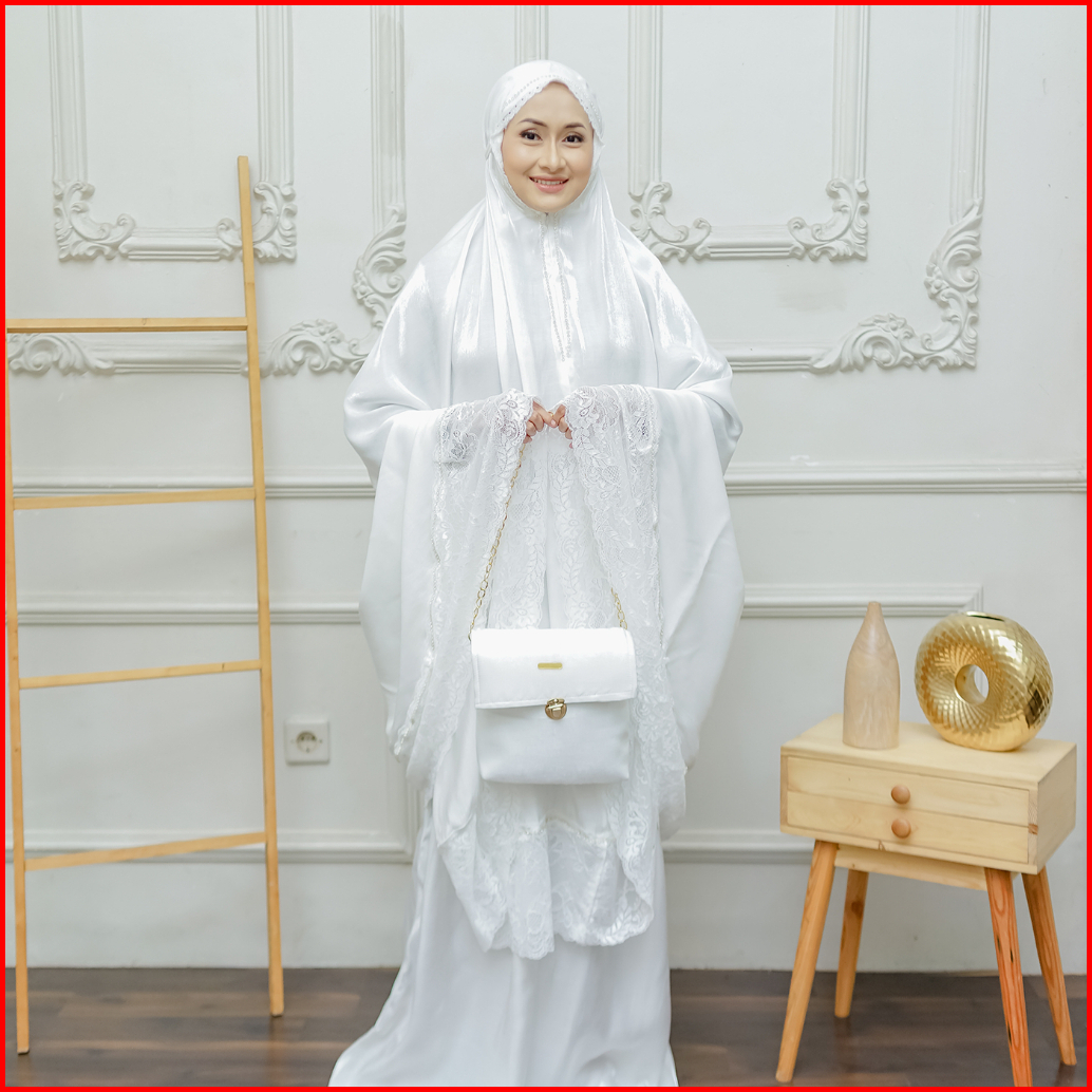 A3muslimwear - Mukena Dewasa Silky Premium 2in1 Swarovski Mewah Renda Jumbo Chainbag Series Terbaru