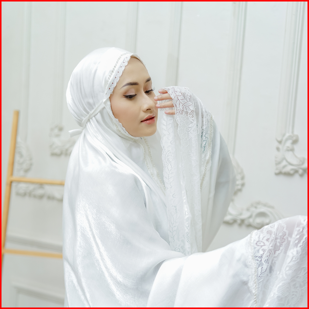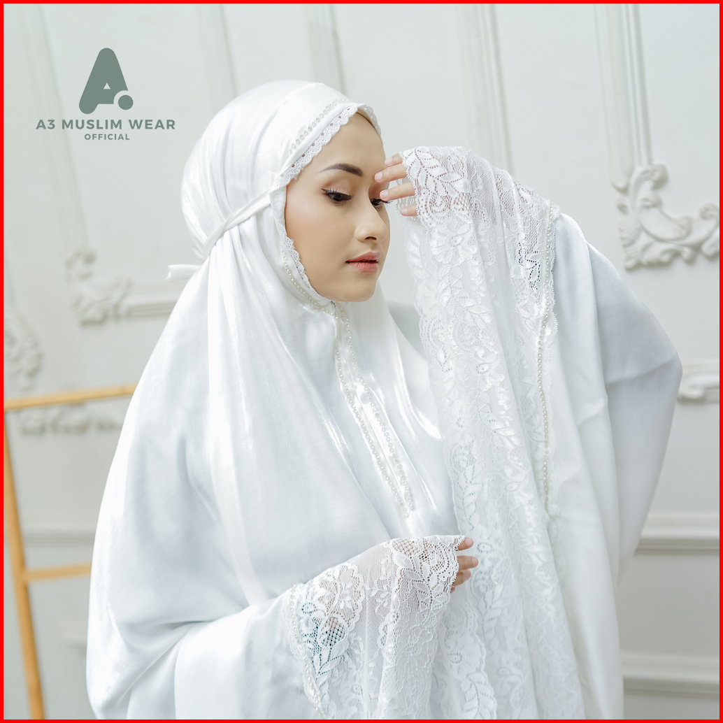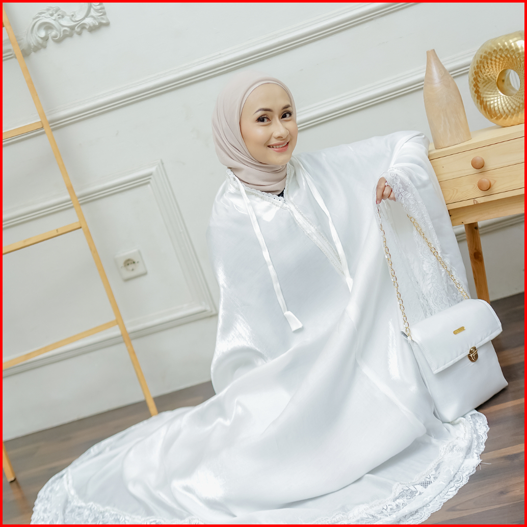 A3muslimwear - Mukena Dewasa Silky Premium 2in1 Swarovski Mewah Renda Jumbo Chainbag Series Terbaru
