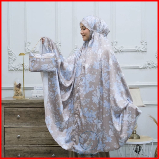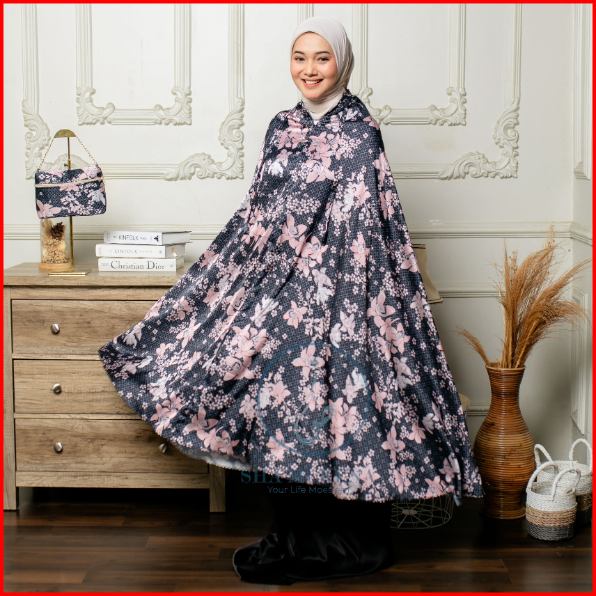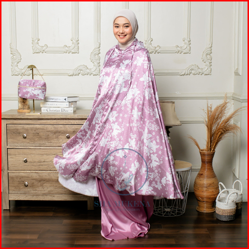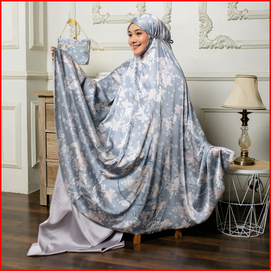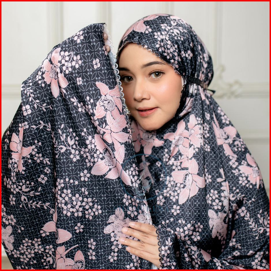 Sha. Mukena 2 In 1 Resleting Mukena Dewasa Armani Silky Motif Bunga Aplikasi Polos Yumna Series