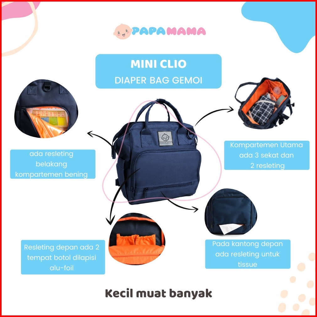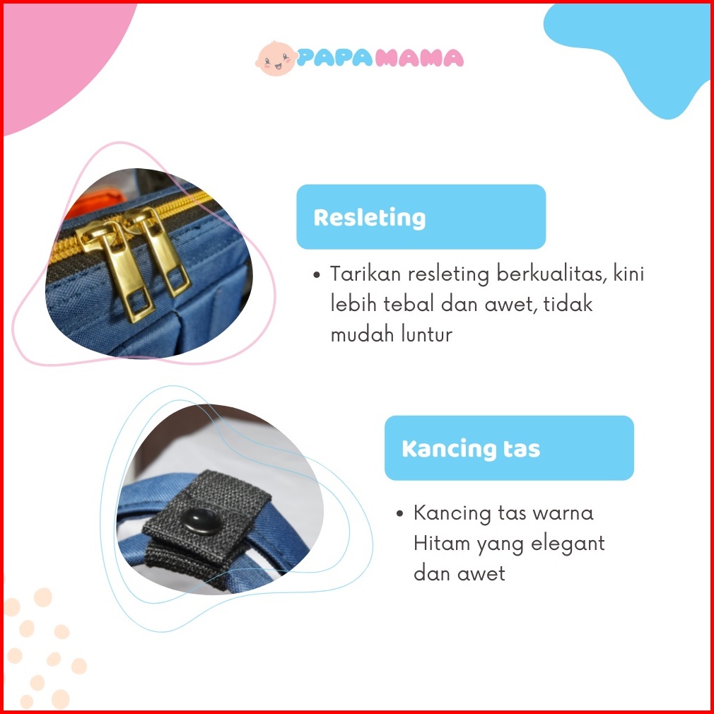Papamama Diaper Bag Ransel 1003 1006 1009 - Tas Popok Bayi Ransel - Tas Ransel Popok Bayi