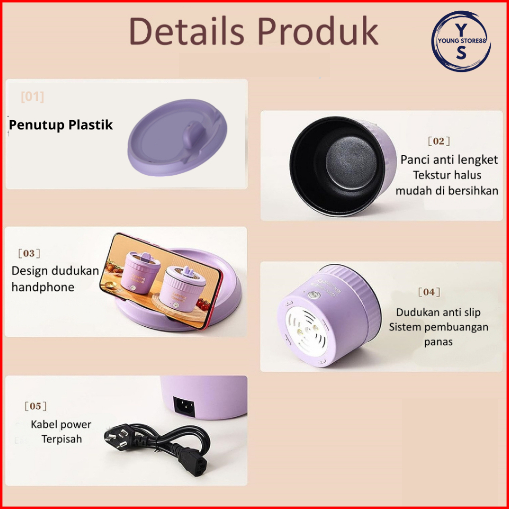 Panci Listrik Serbaguna 1.2l Anti Lengket Panci Elektrik Low Watt Penanak Nasi Mini Portable
