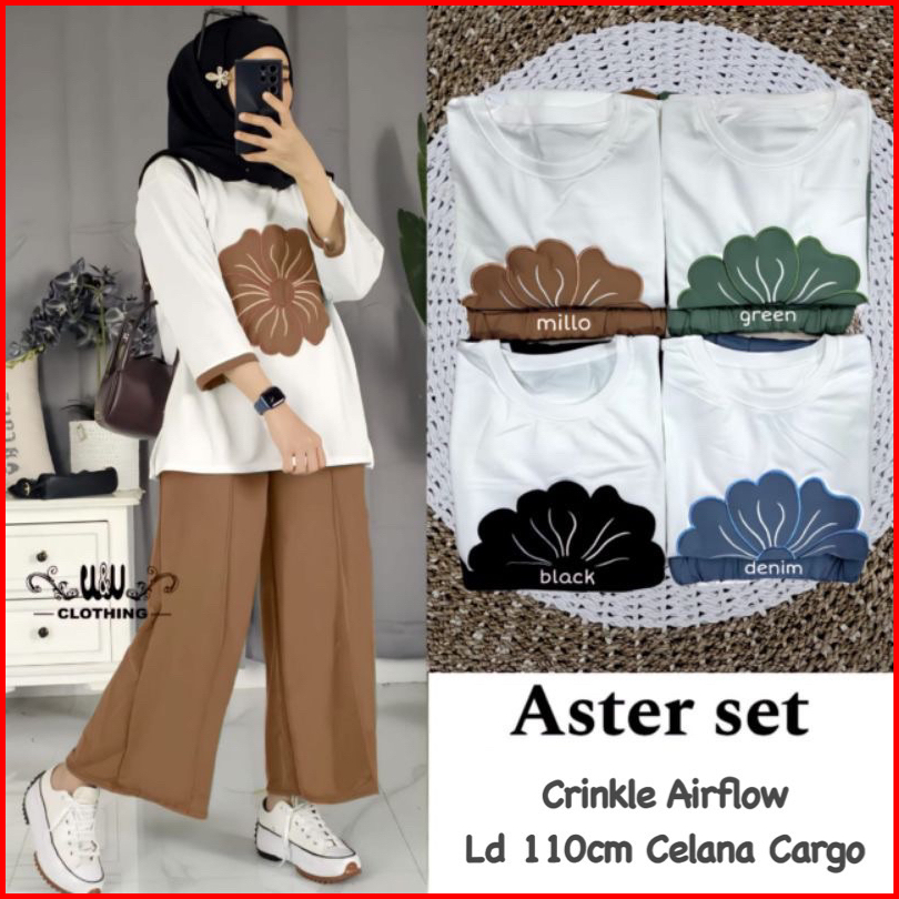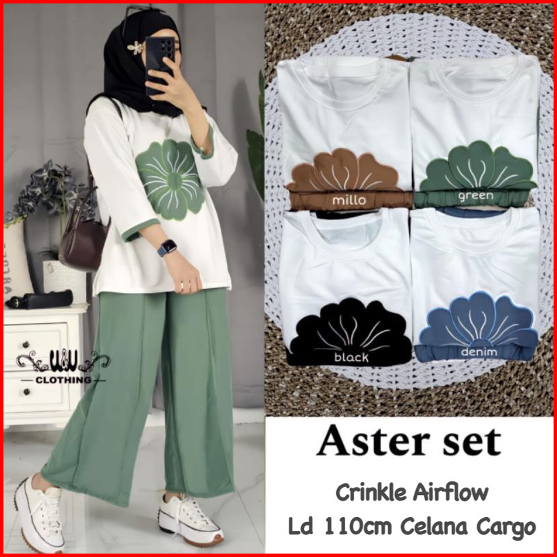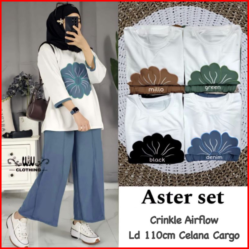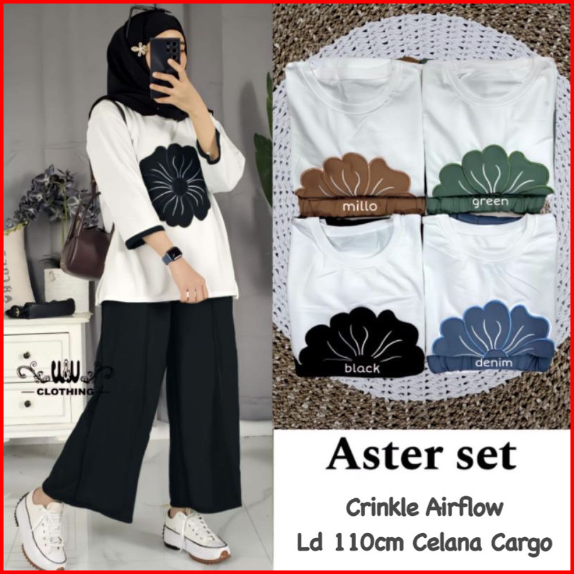 Aster Set Celana Cargo Crinkle Airflow Ld 110 Setelan Aster One Set Aster Setelan Kombinasi Set Bunga Setelan Bunga One