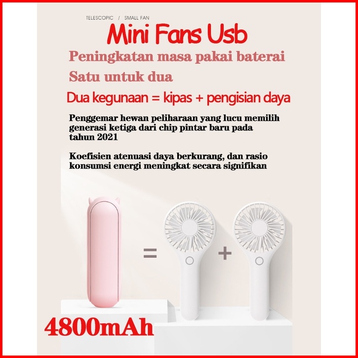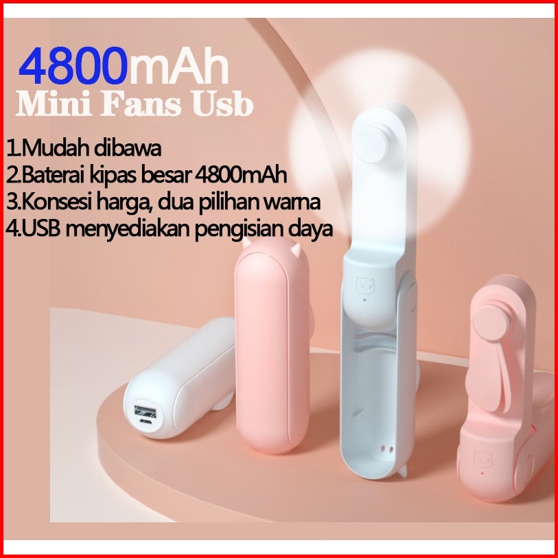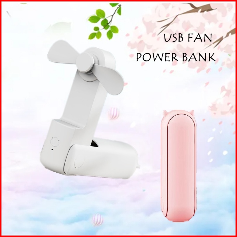 Kipas Angin Portable Mini Fans Power Bank 2 In 1 Usb Rechargeable Pocket Desk Handheld Fan