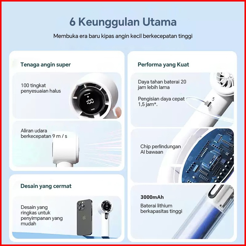 High Speed Portable Handheld Mini Fan Kipas Angin Kecil Genggam Bisu Ac Kecil Portabel Portabel Kecepatan Super Tinggi K