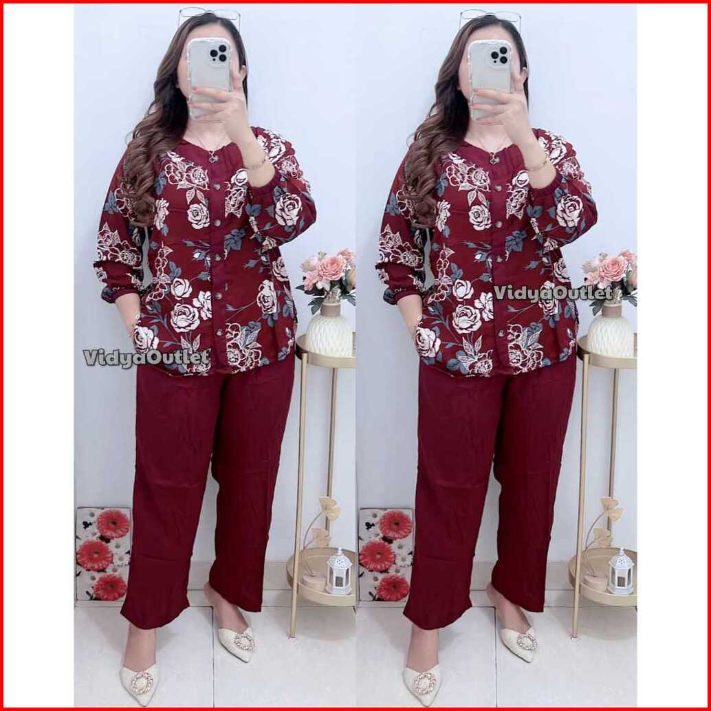 Vidya - Setelan Fany 110999 -stelan Wanita - Atasan Bunga - Full Kancing