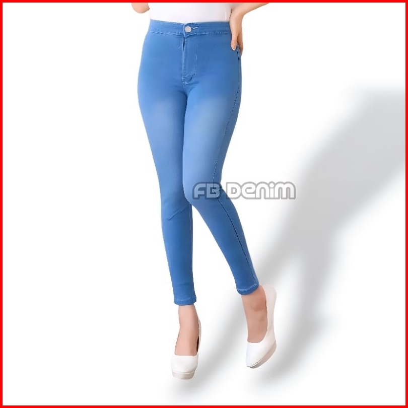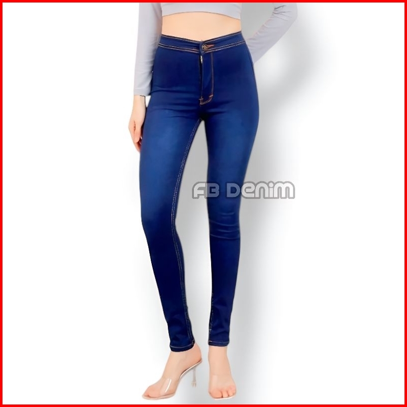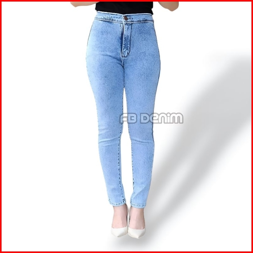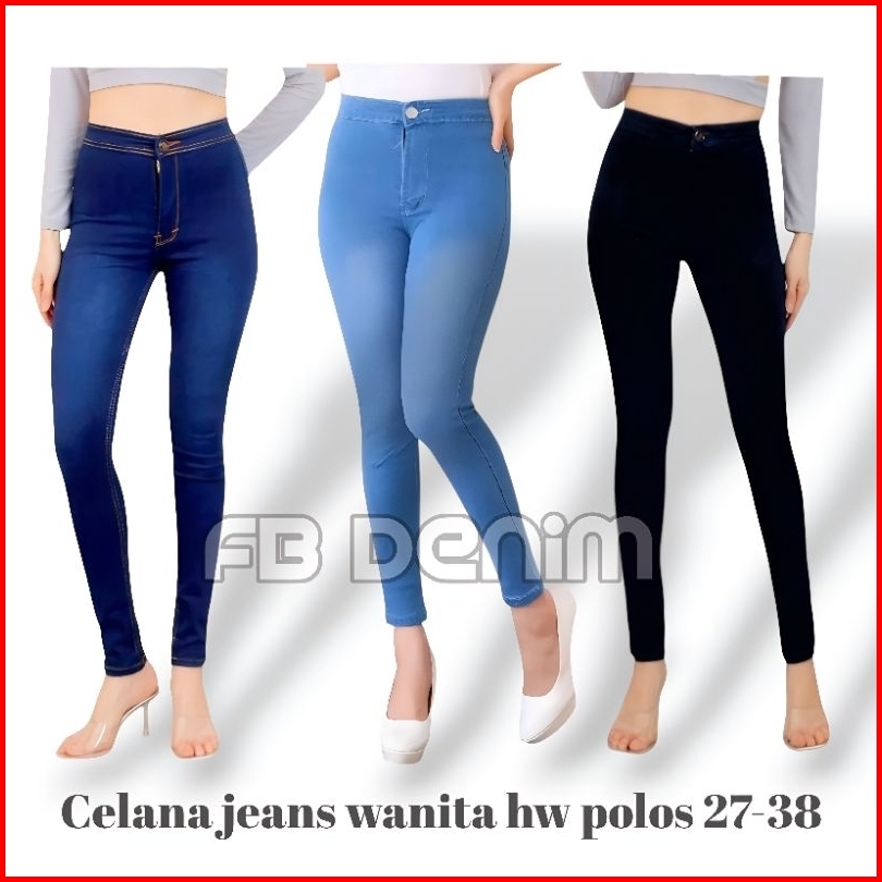 Celana Jeans Wanita Highwaist Slim Fit Polos Kekinian