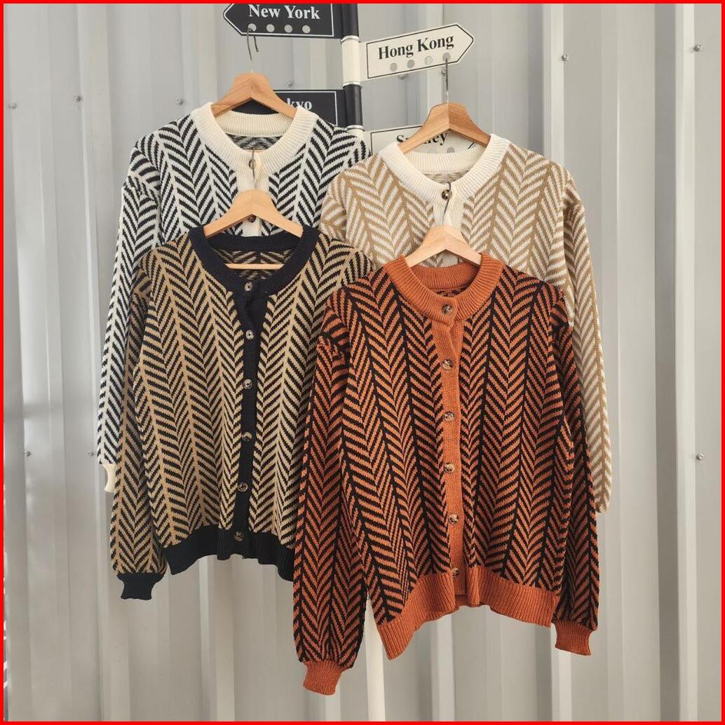 Bueno Knite Kardigan Wanita Oversize Bahan Rajut Tebal Premium - Sofya Zigzag Cardy