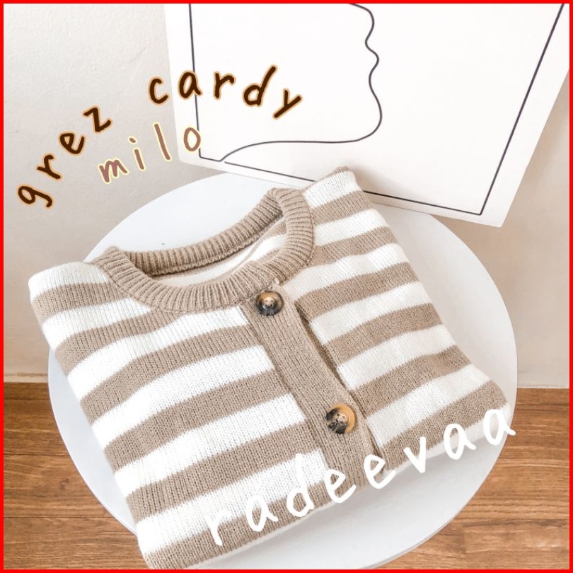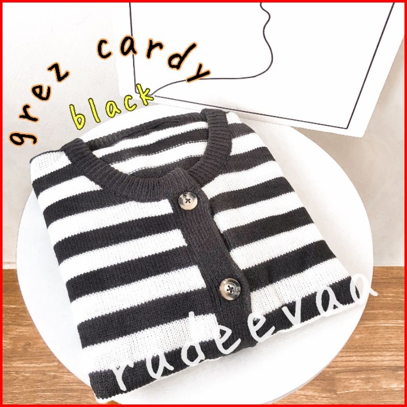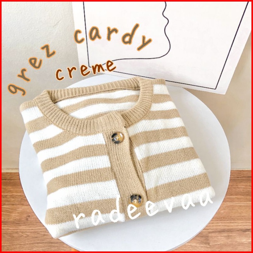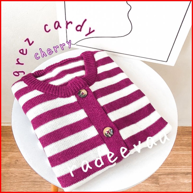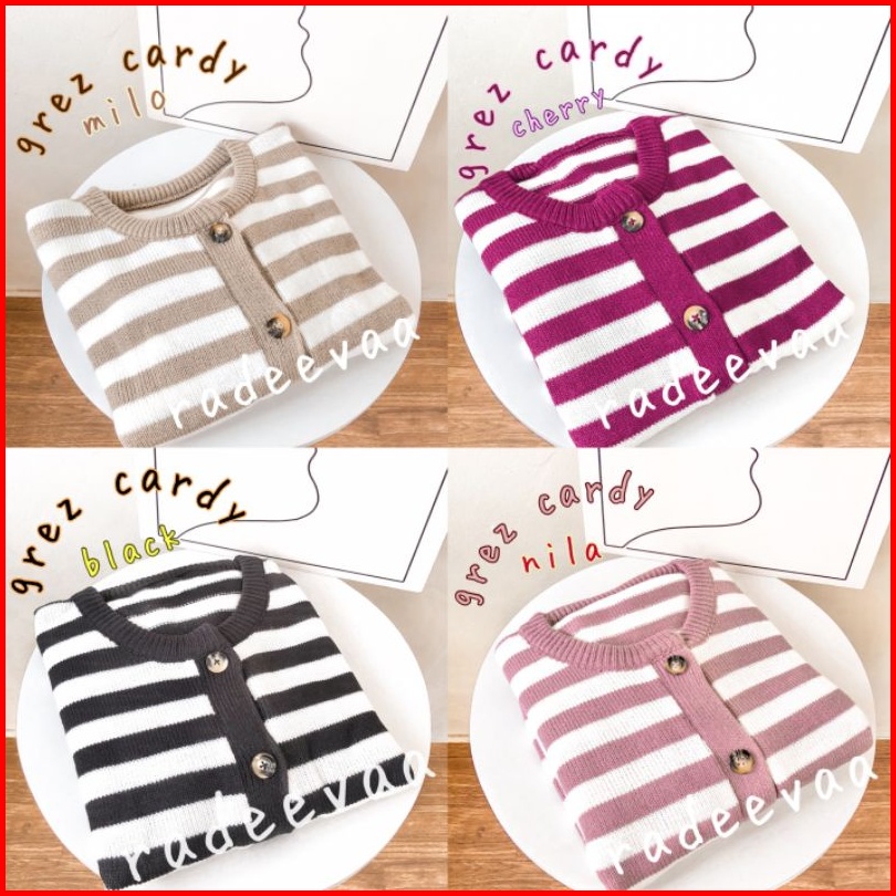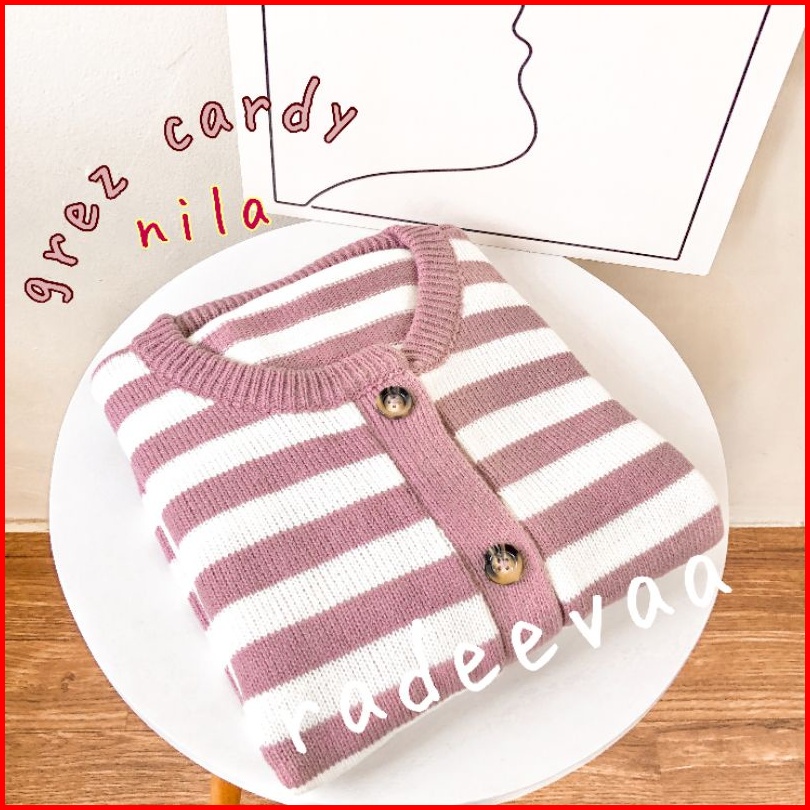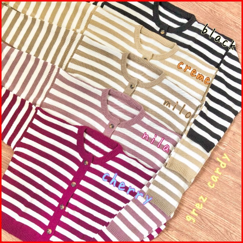 Grez Cardi Knit Stripe Crop Oversize Atasan Cardigan Rajut Wanita Basic Motif Garis