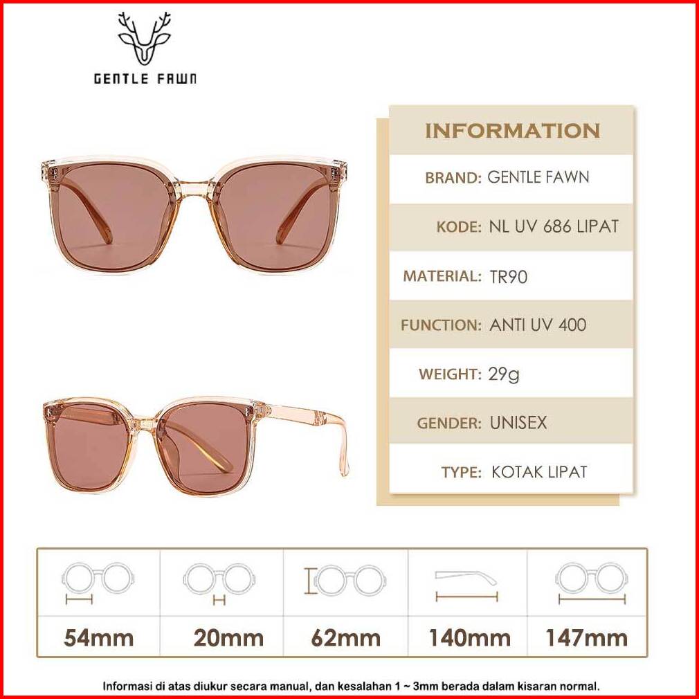 Gentle Fawn Kacamata Sunglasses Lipat Anti Uv Anti Silau Bahan Tr90 Ringan Fashion Pria Wanita Trendy Foldable Sunglasse