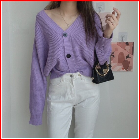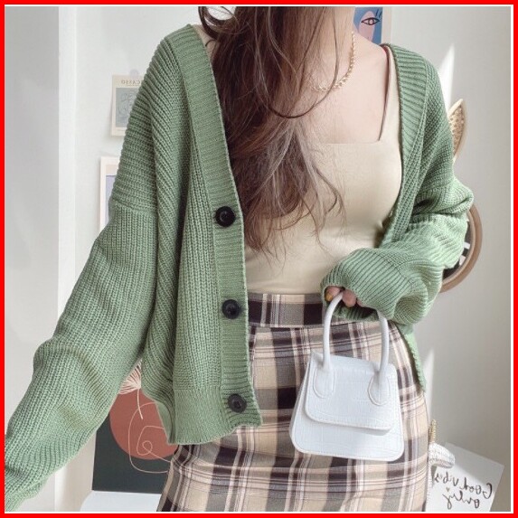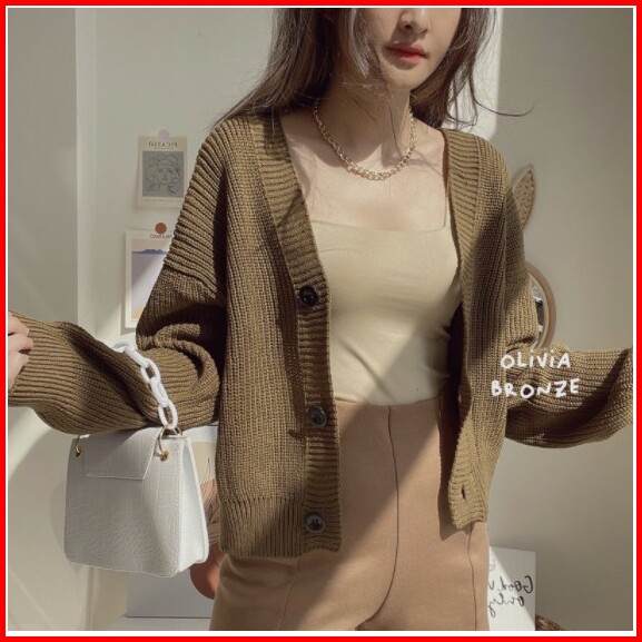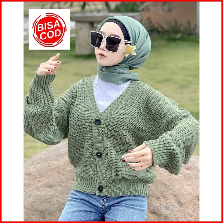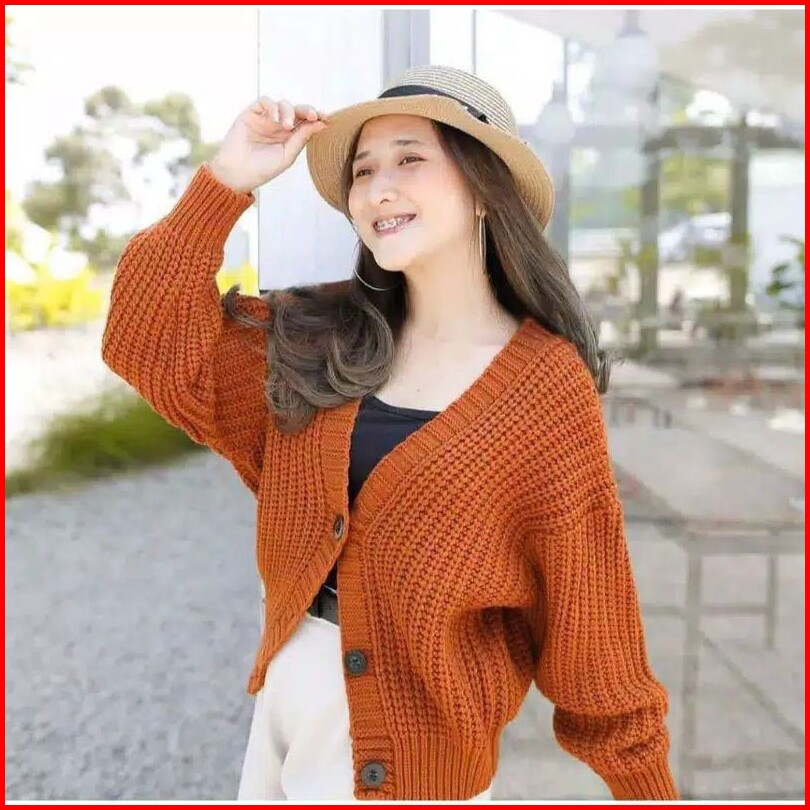 Cardigan Rajut Wanita Wolly Crop Cardigan 7 Gauge Ellena Basic Outwear