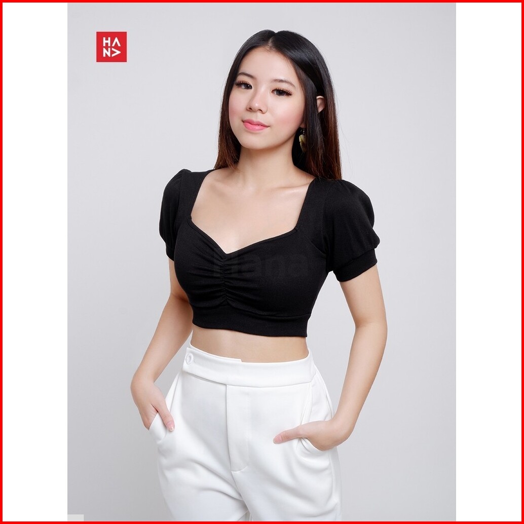 Hana Fashion - Fiore Crop T-shirt Wanita Crop Top Wanita Korea - Ts211