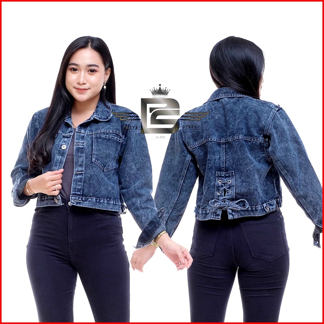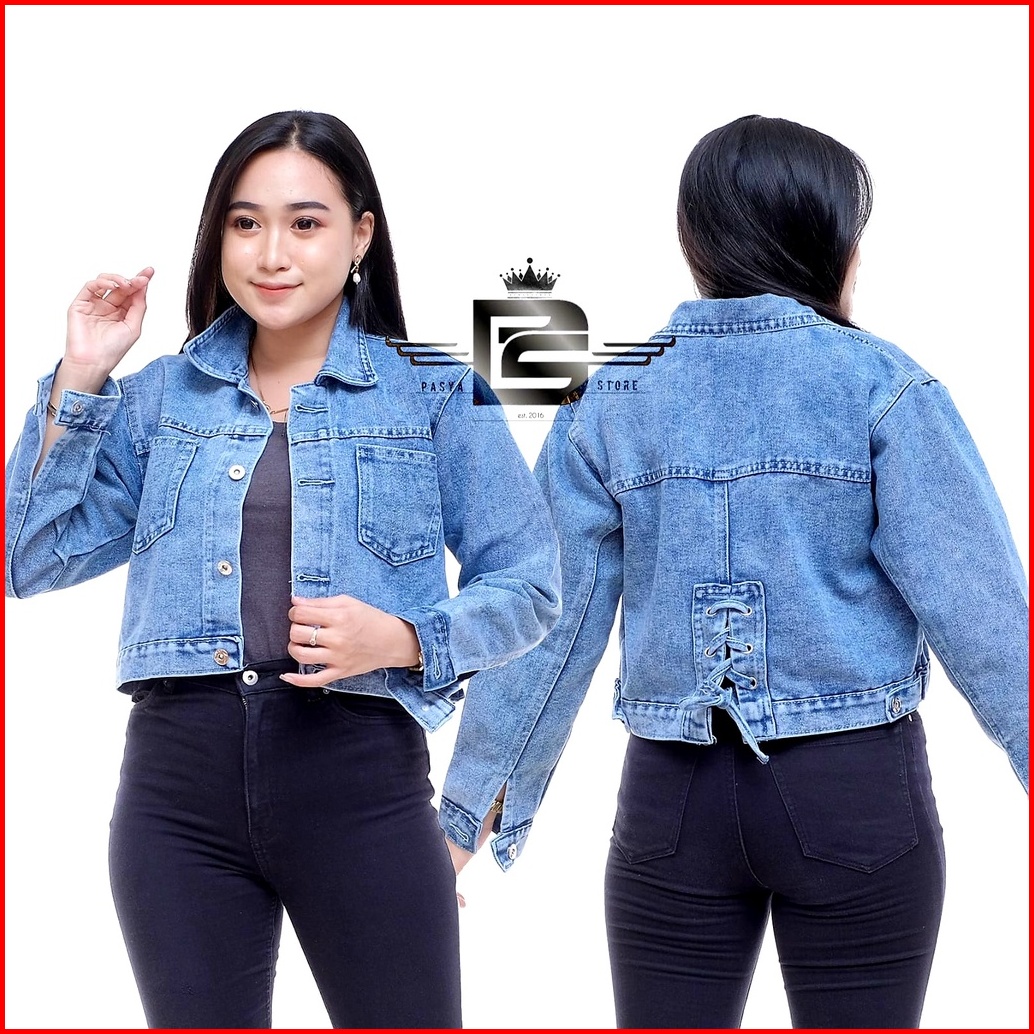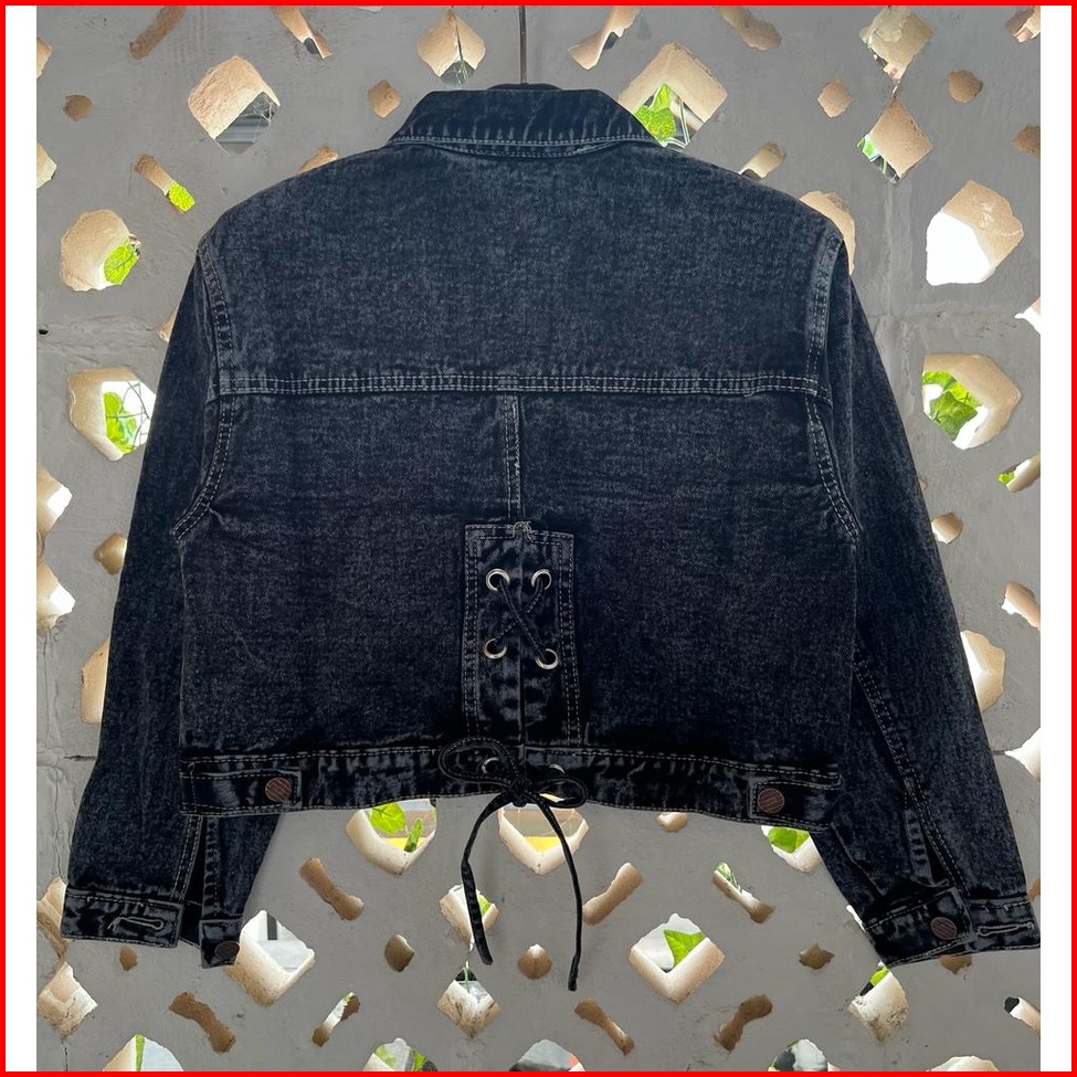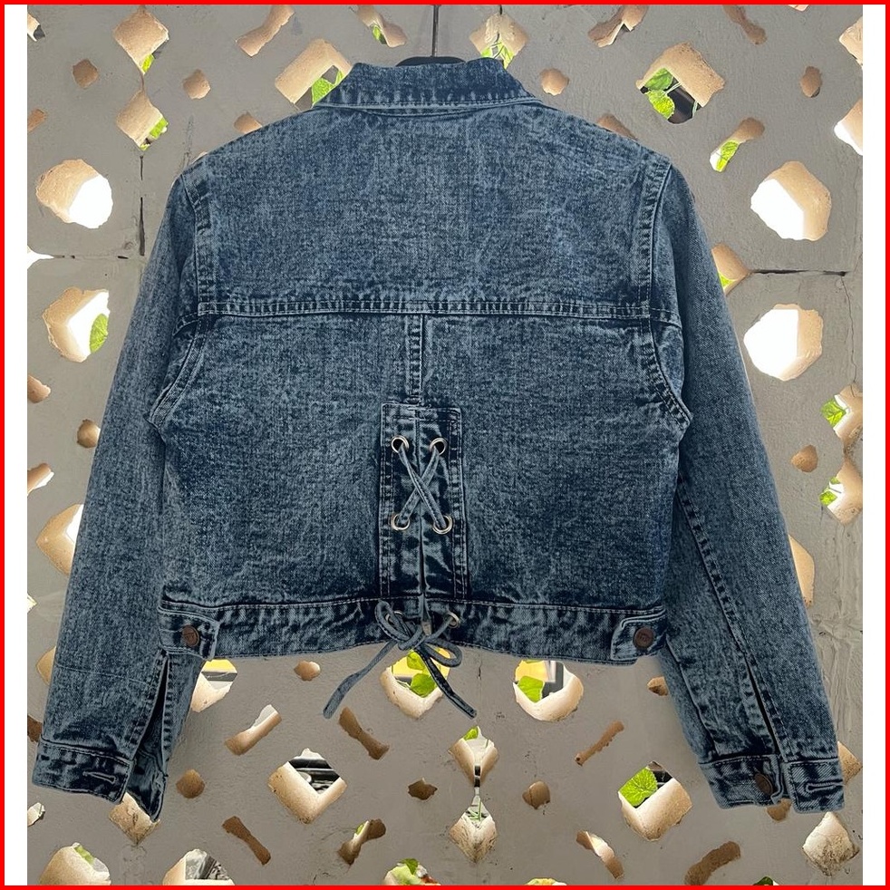 Jaket Jeans Crop Wanita Model Tali Dan Kancing Terbaru Korean Style