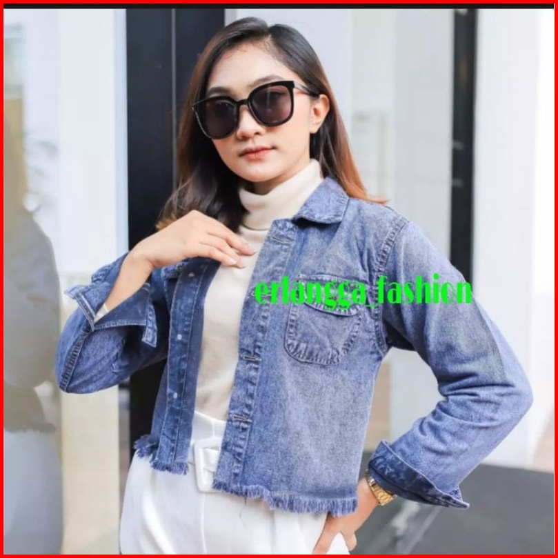 Jaket Crop Denim Jeans Wanita Rawis Jaket Crop Korean Jins Cewe Cewek Murah Terbaru
