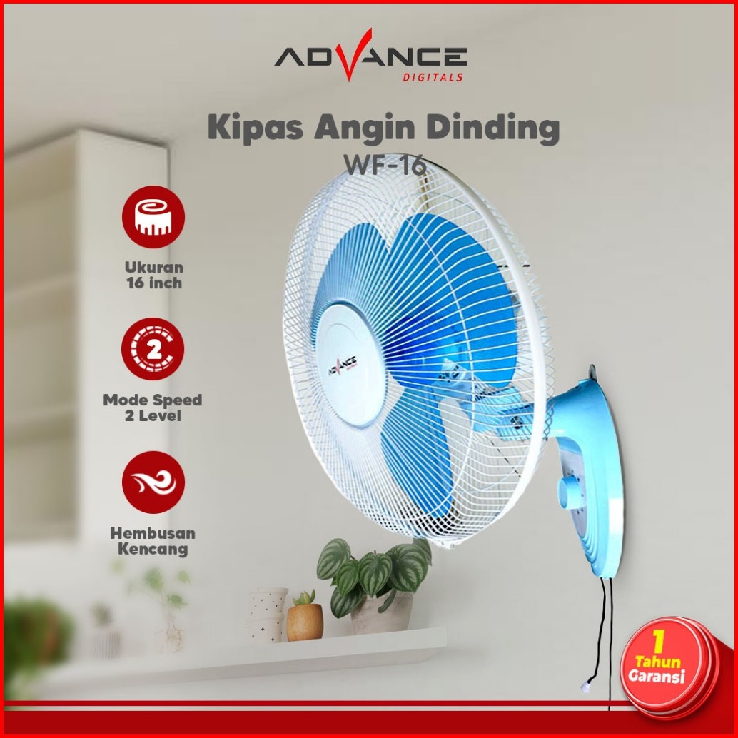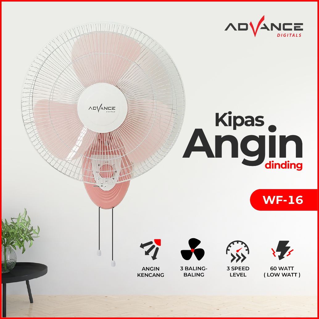 Advance Wf16 Kipas Angin Dinding 16 Inch Hembusan Angin Kencang Dengan Daya 60 Watt Kipas Low Watt