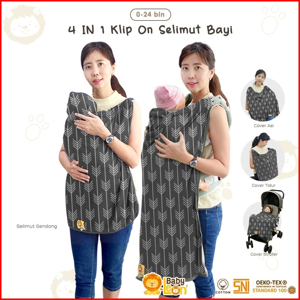 4in1 Baby Leon Selimut Hoodie Klip Baby Selimut On The Go Baby Blanket Hoodie Bs-336 Selimut Stroller Penutup Stroller B