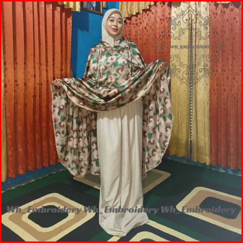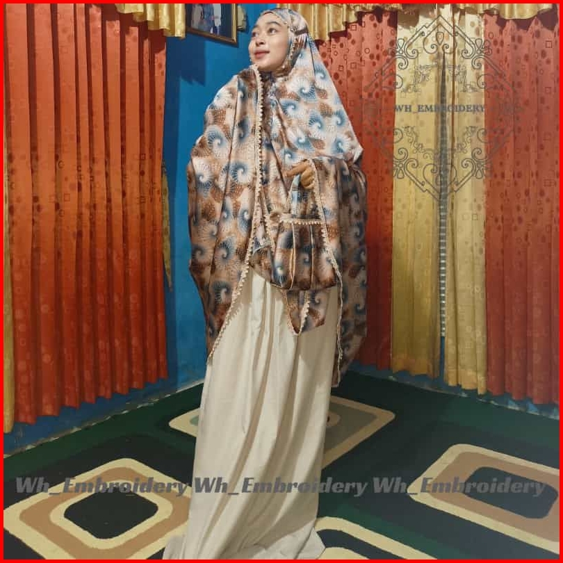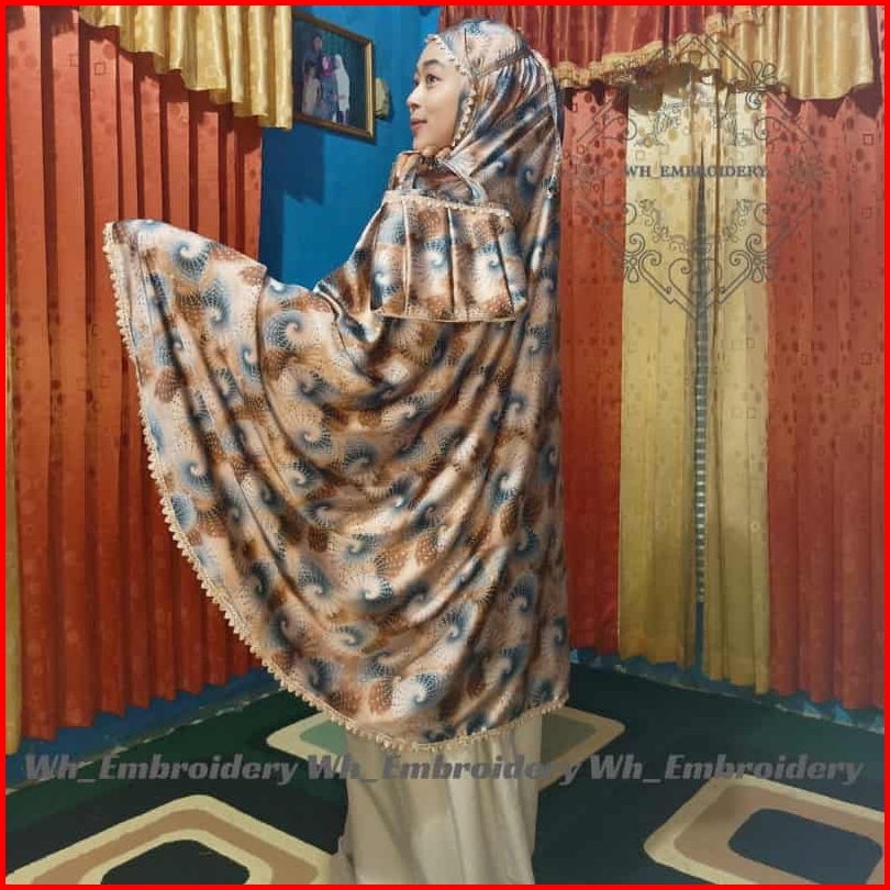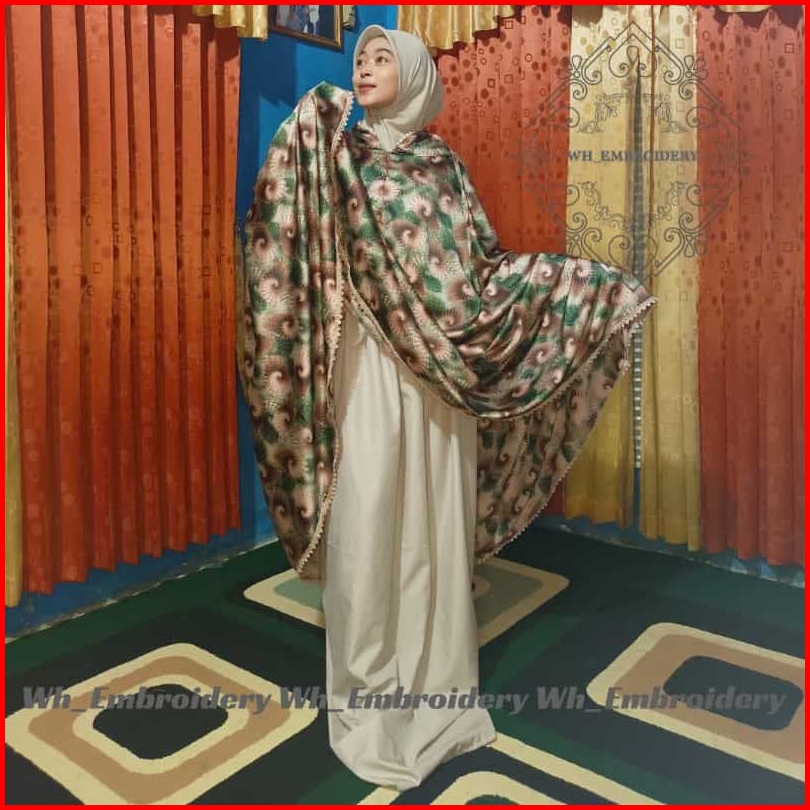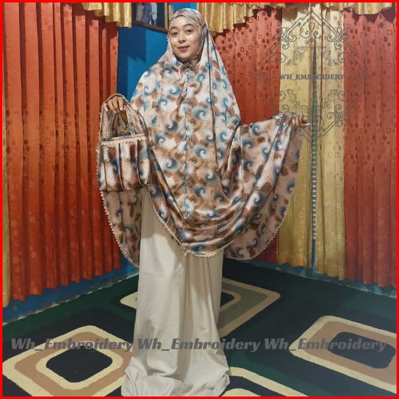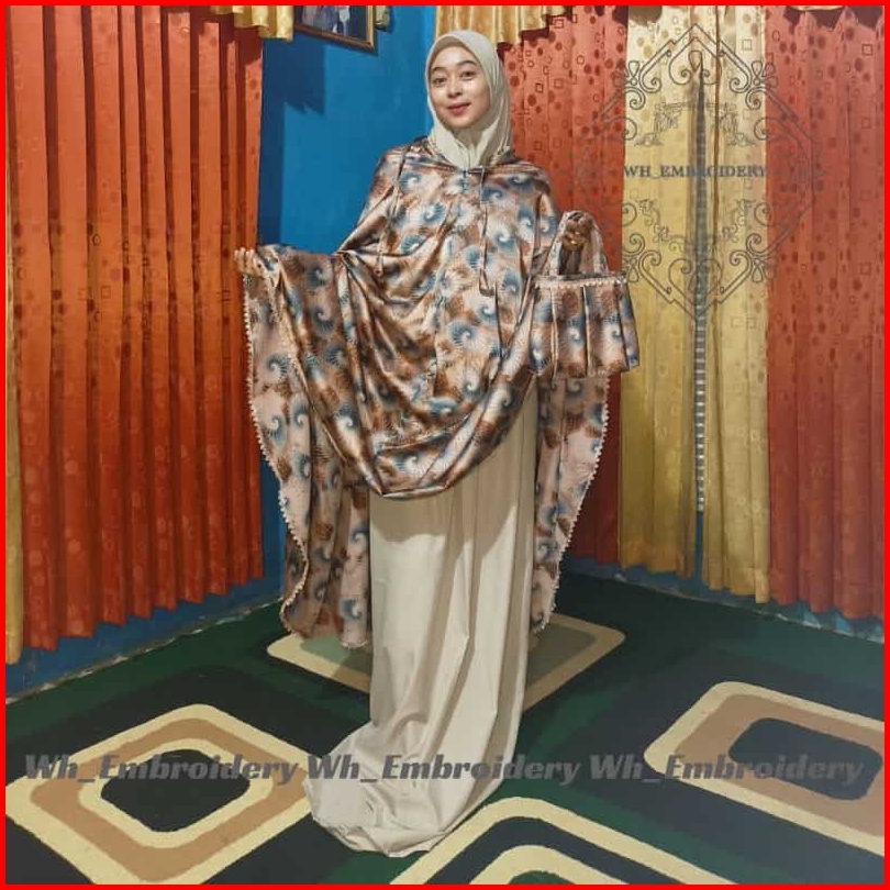 Wh Embroidery - Mukena Dewasa Silk 2in1 Armani Silk Brown Premium Import Motif Terbaru Combi Polos