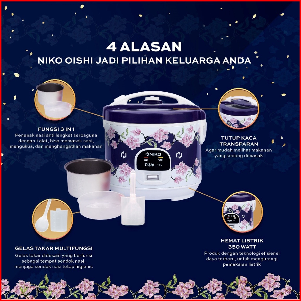 Niko Rice Cooker Tutup Kaca Oishi Landmark Batik Amazon Magic Com 1.2 Liter 3 In 1 Bonus Gelas Ukur Dan Sendok Nasi