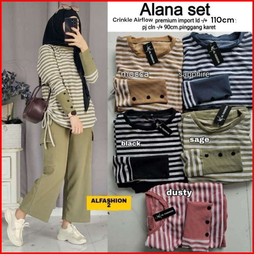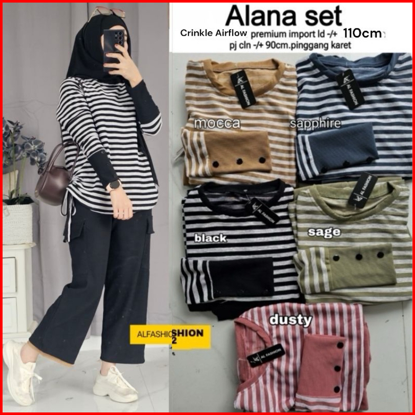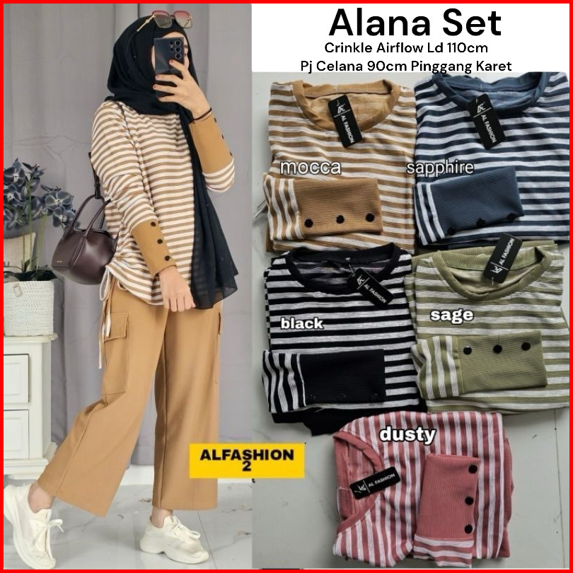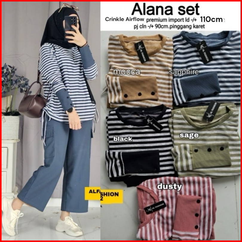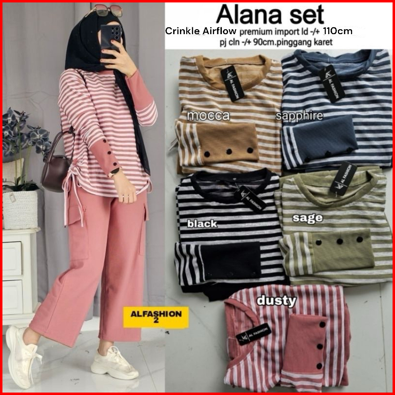 Alana Set Serut Salur Celana Cargo Crinkle Airflow Setelan Alena One Set Alena Setelan Cargo One Set Cargo Set Wanita Sa