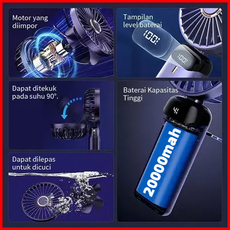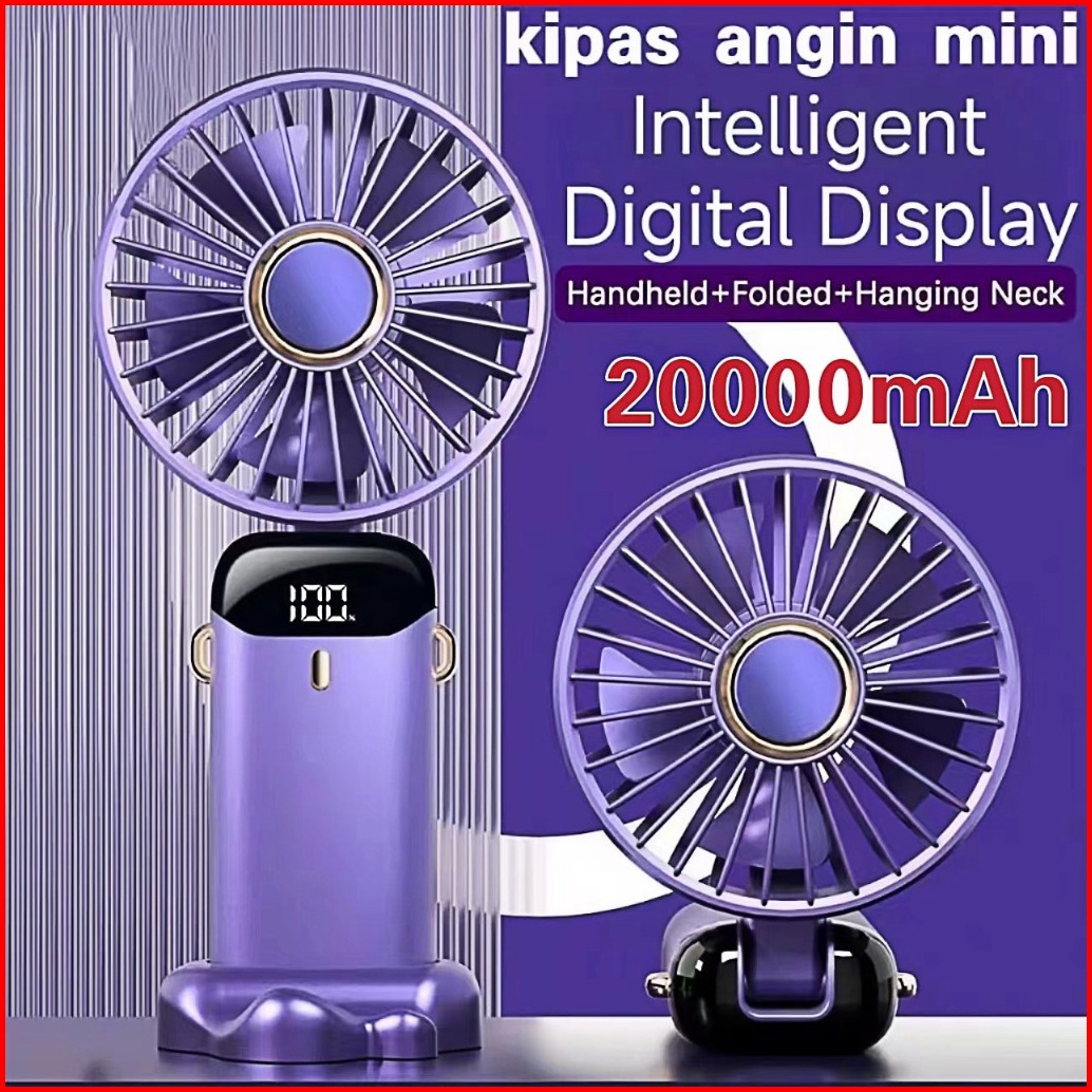 Kipas Angin Mini Portable Usb 20000 Mah Kipas Lipat Leher 5-speed Wind Led Display Dengan Aromaterapi Kipas Lipat Charge