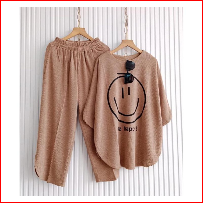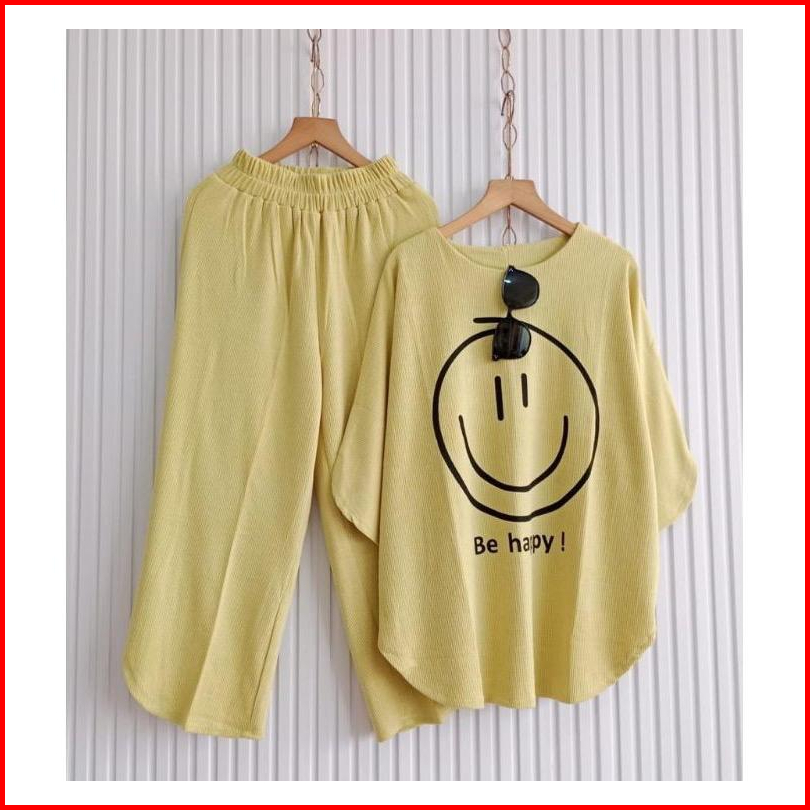 Setelan Be Happy Crinkle Printing Oversize Ld 110 One Set Be Happy Set Happy One Set Smile Be Happy Setelan Be Happy Ter