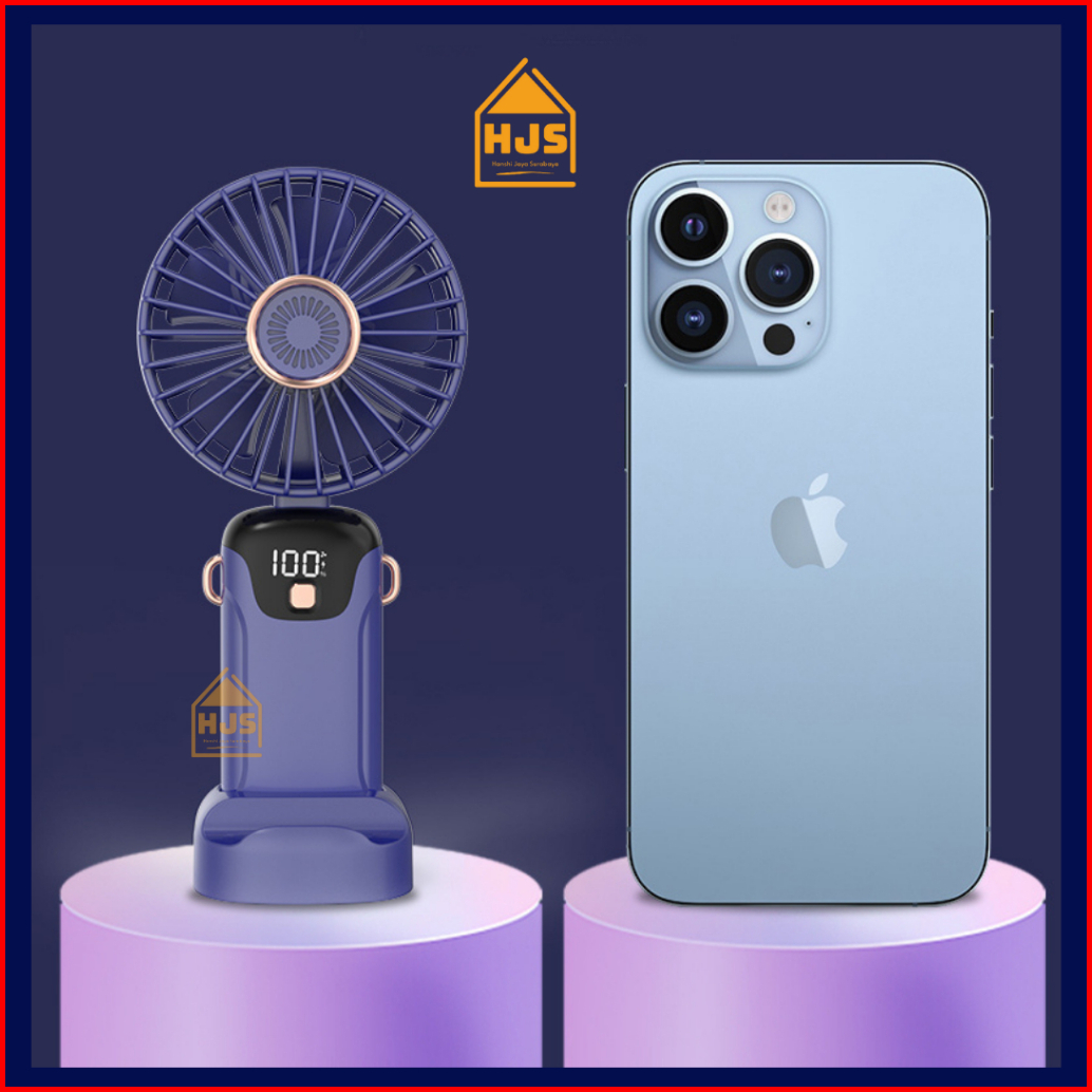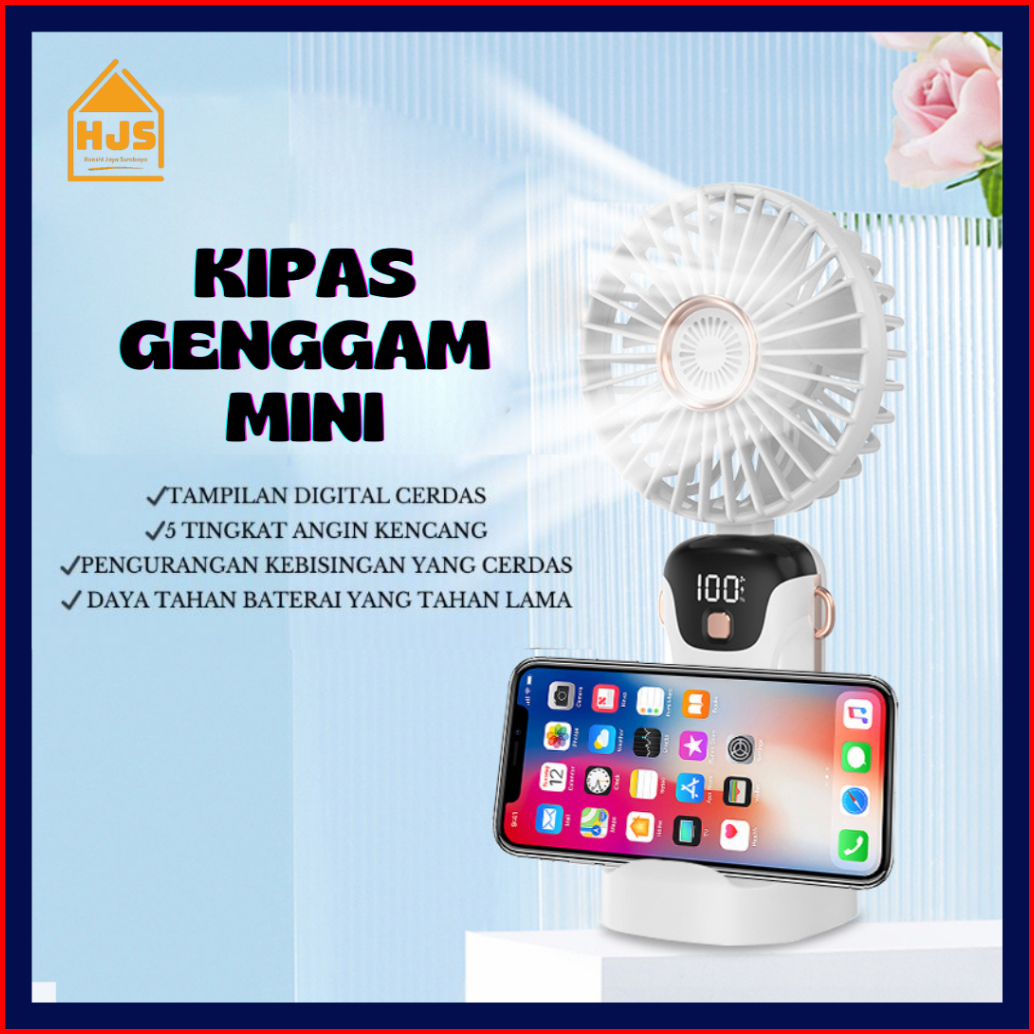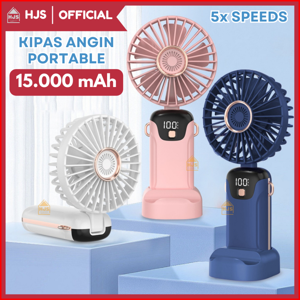 Hjs Kipas Angin Mini Portable Usb 15000 Mah Kipas Lipat Genggam Leher 5-speed Wind Led Display