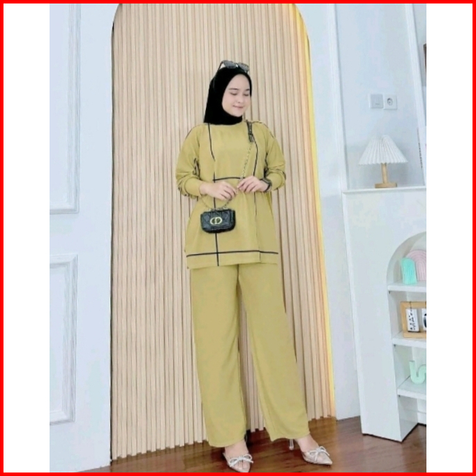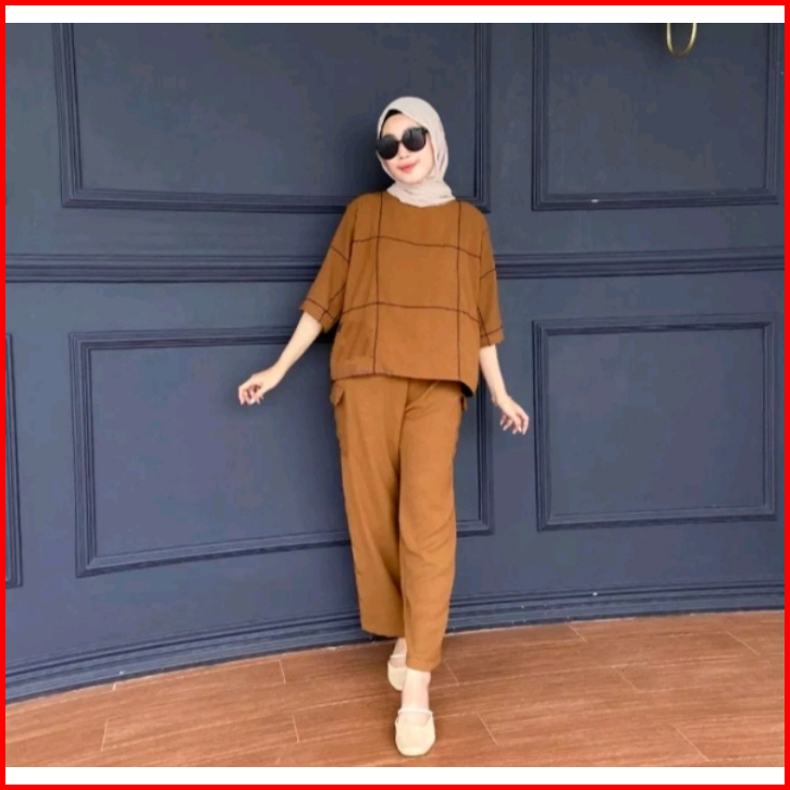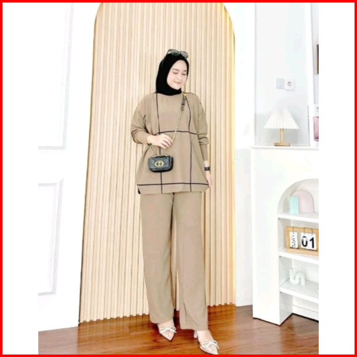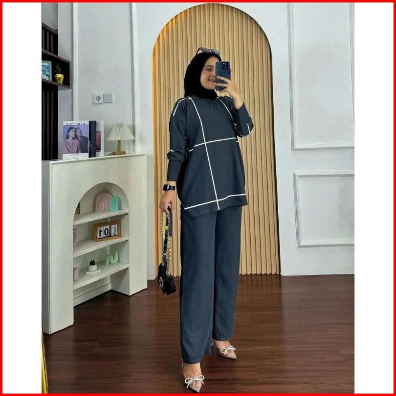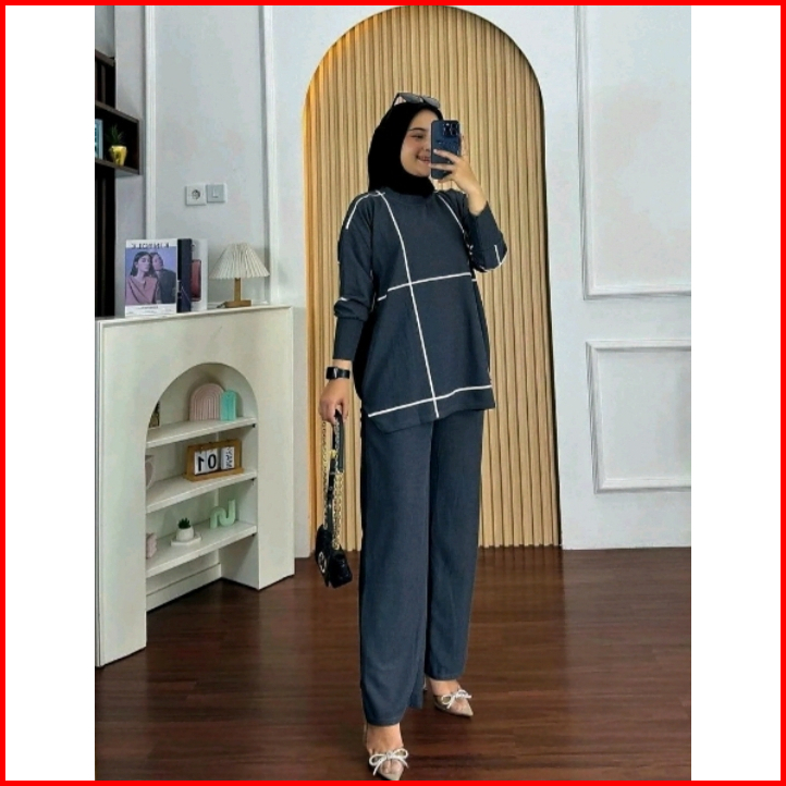 Setelan Wanita Terbaru 2024 Fiora Set2in1 Murah Bahan Charamel Knit Stelan Santai
