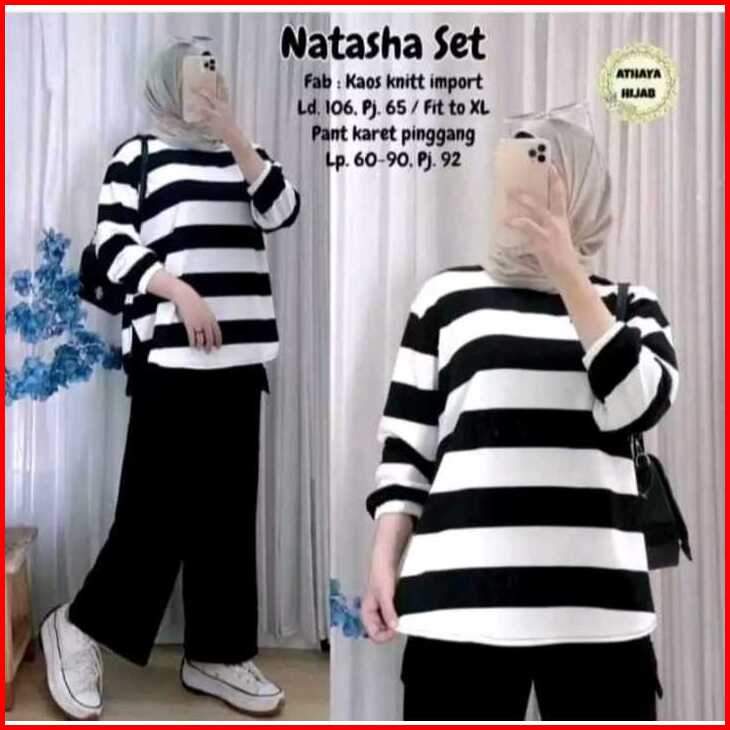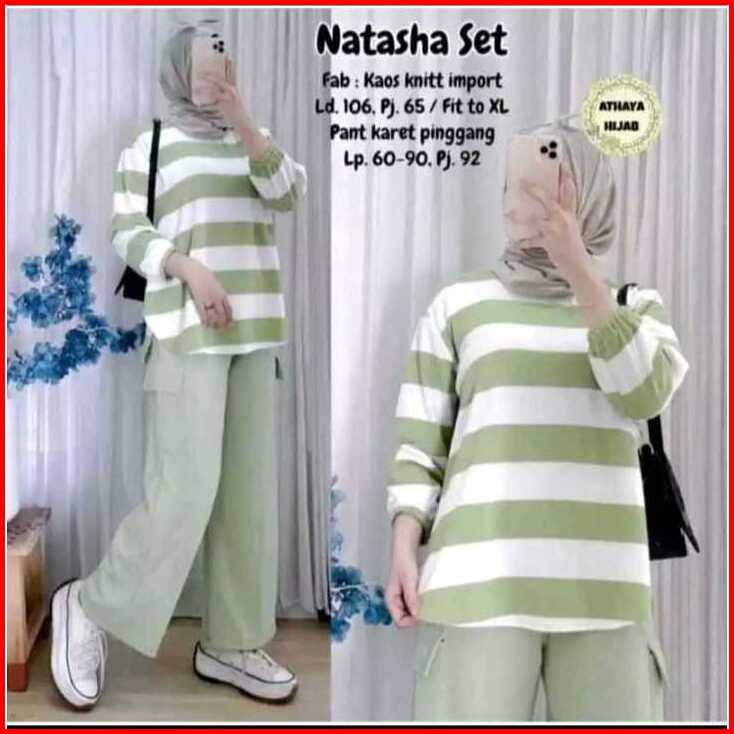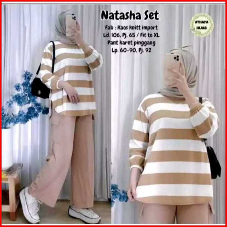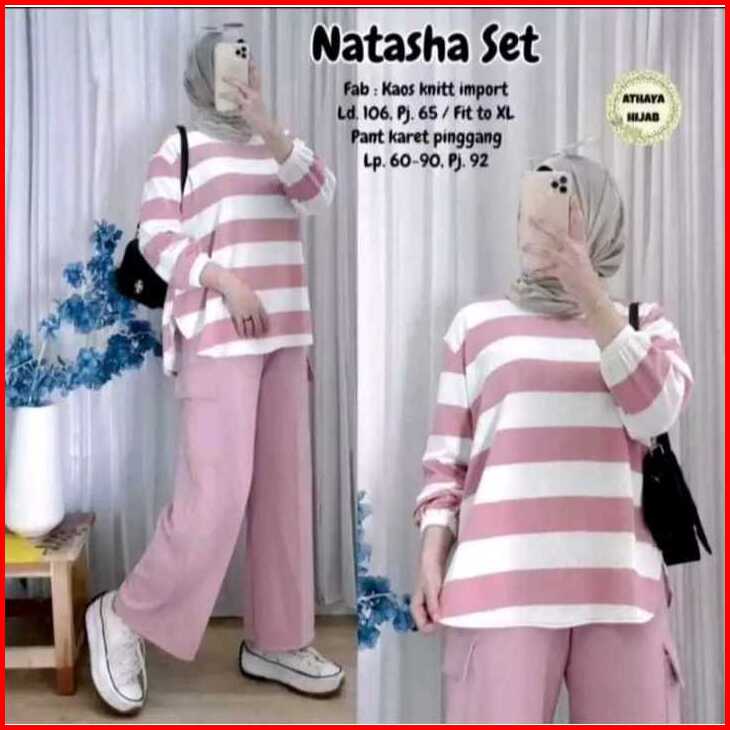 Natasha Set Salur Wanita Setelan Wanita Baju Muslim One Set Muslim Terkini