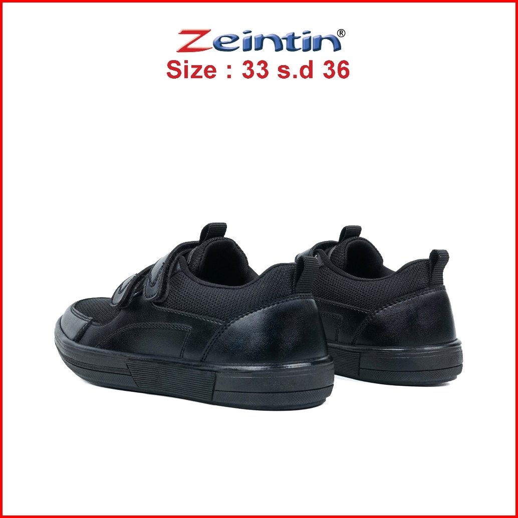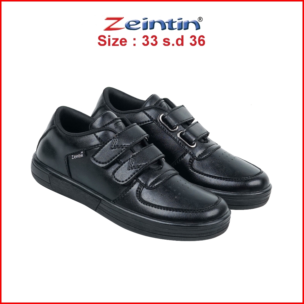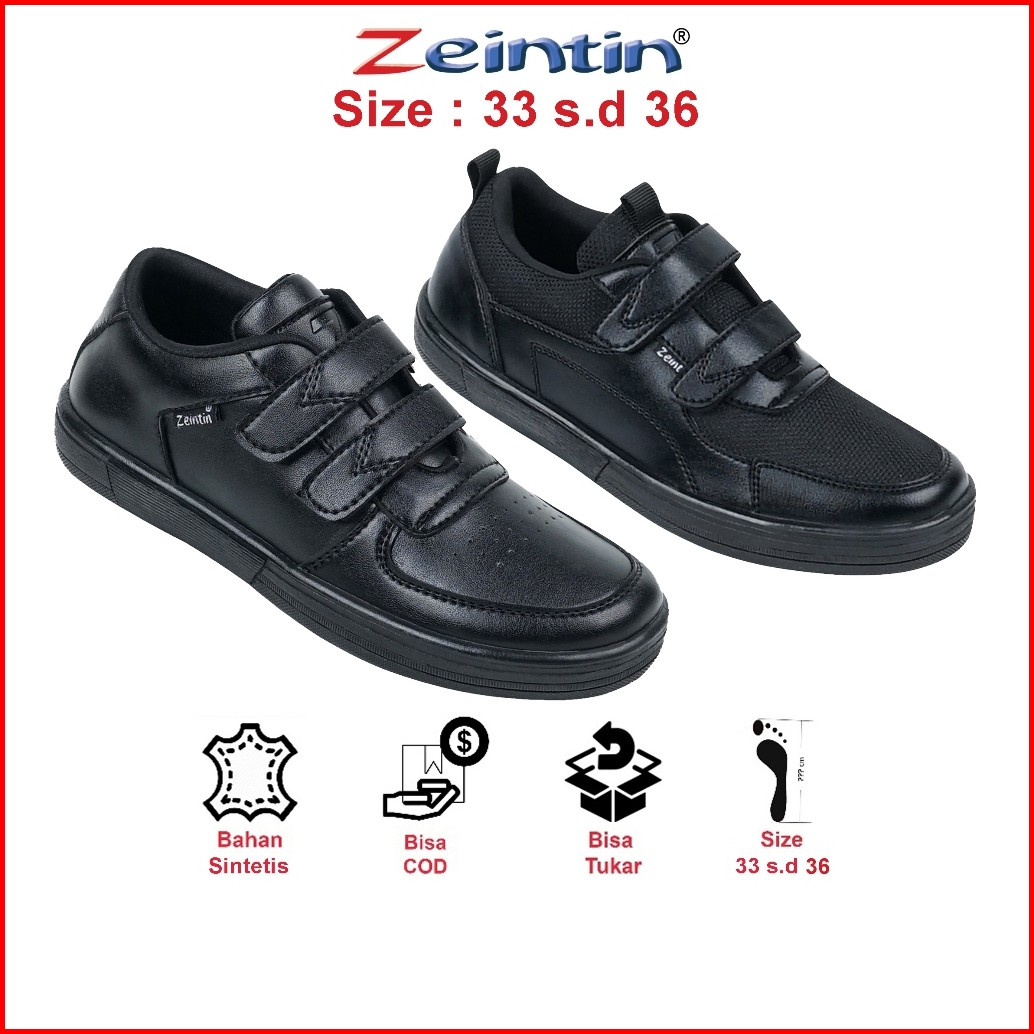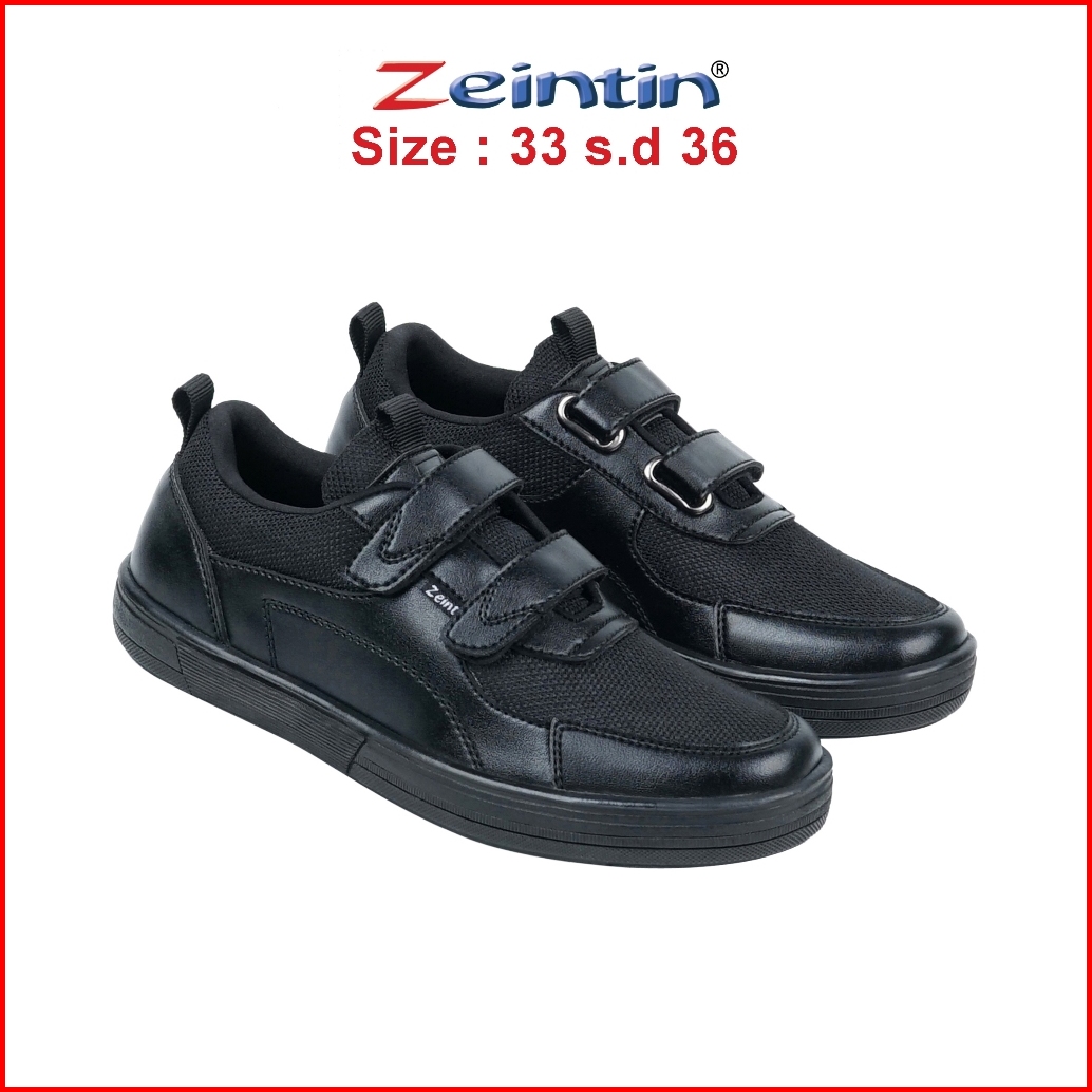 Zeintin - Sepatu Sekolah Anak Tanggung Kulit Sintetis Full Black Zeintin Nn