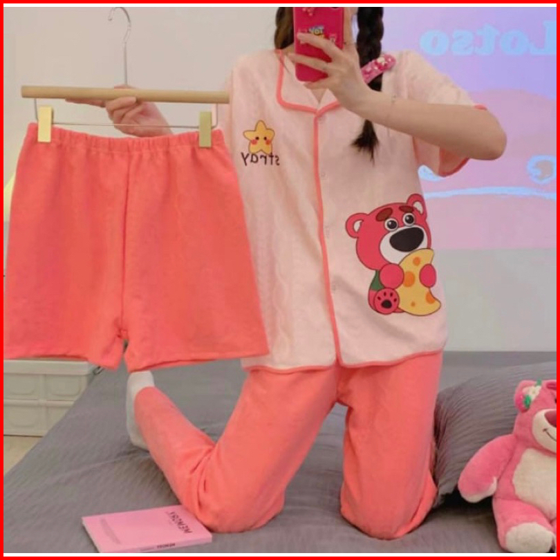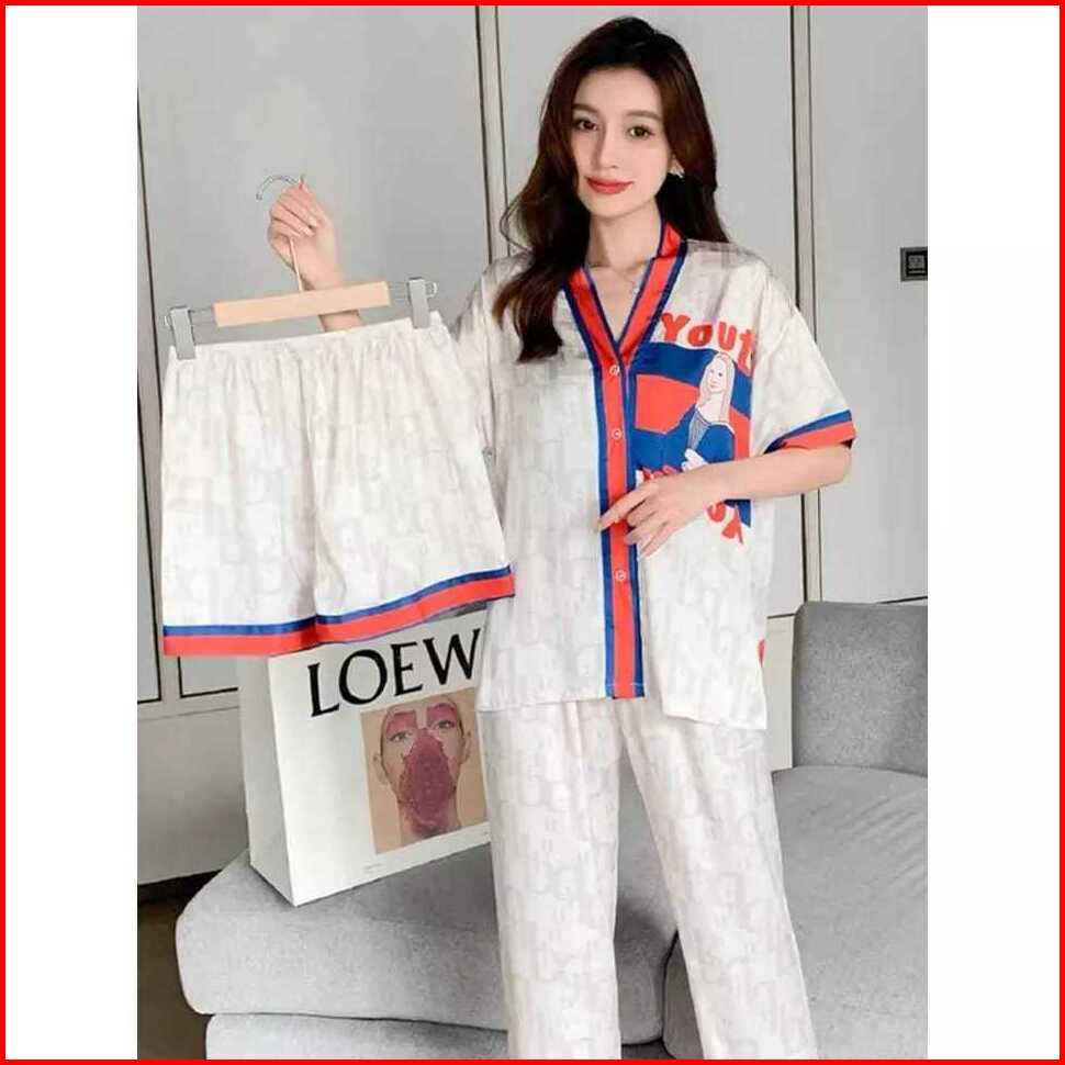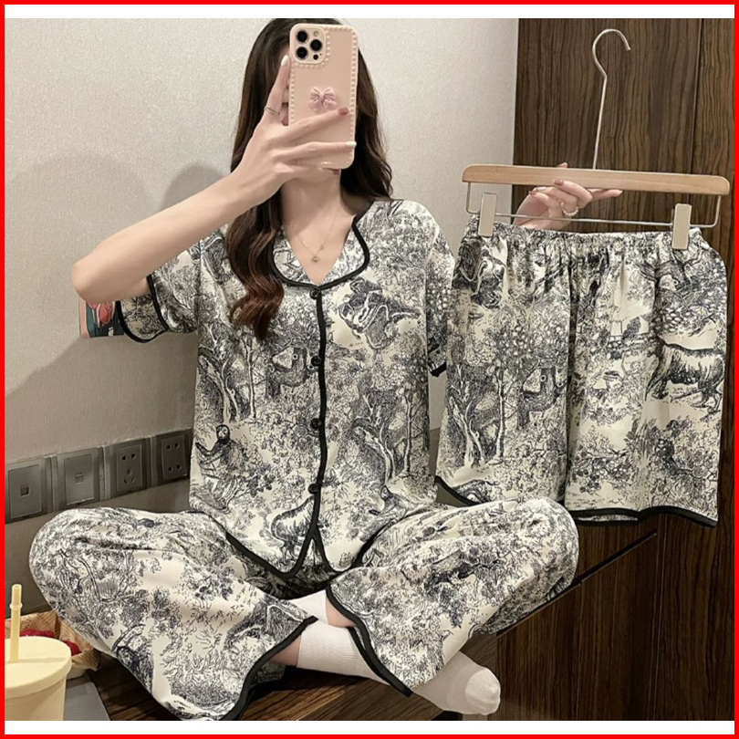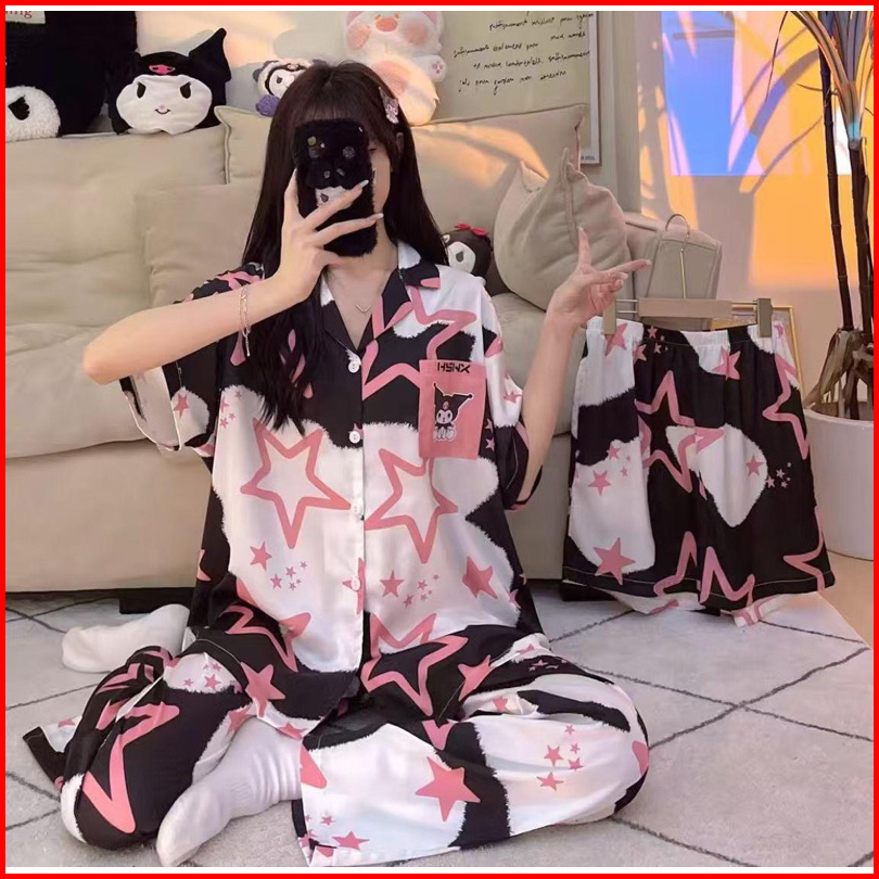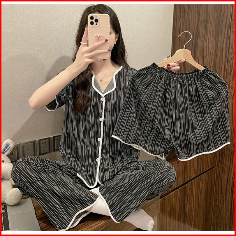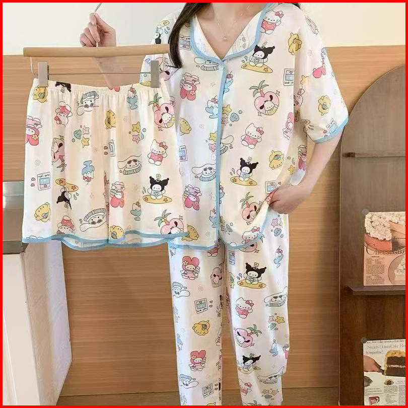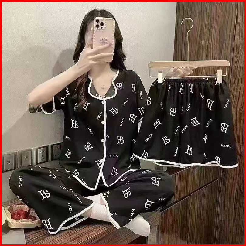 Set Baju Tidur 3in1 Cp Hp Baju Lengan Pendek Celana Pendek Celana Panjang 3in1 Terpopuler Set Baju Tidur Wanita