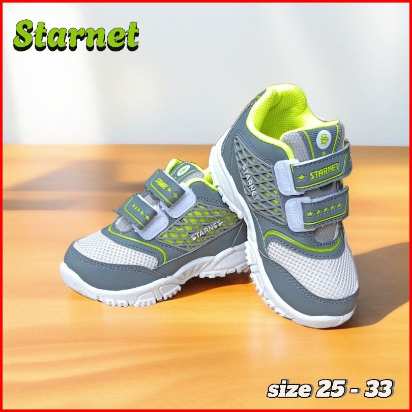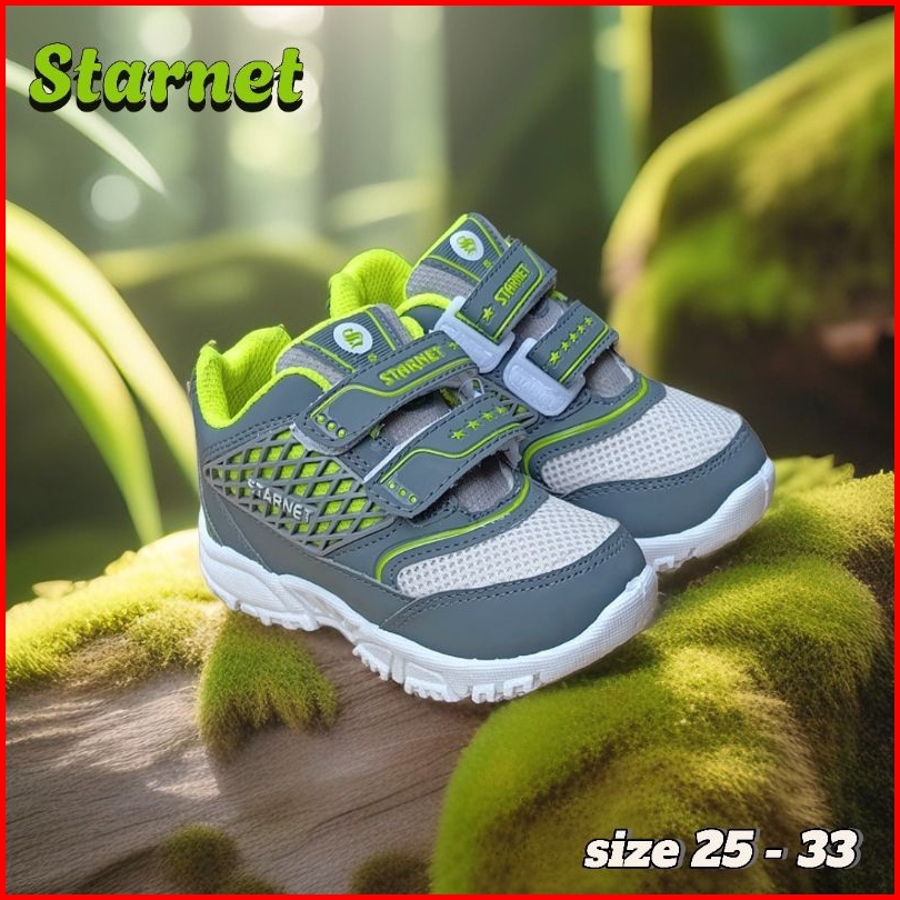 Sepatu Anak 1 - 8 Tahun Laki Perempuan Starnet Size 25-33 Balita Tk Paud Cewek Cowok Grey Green